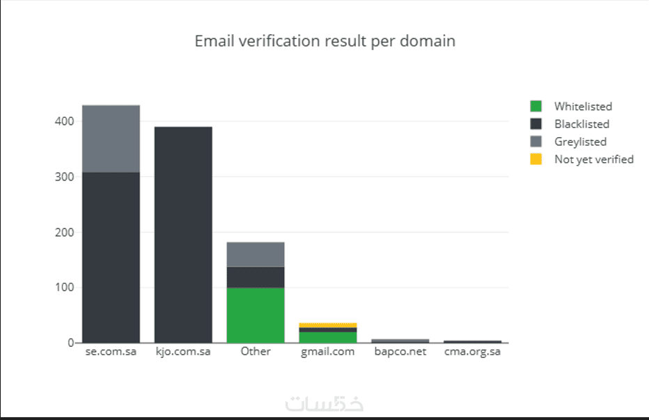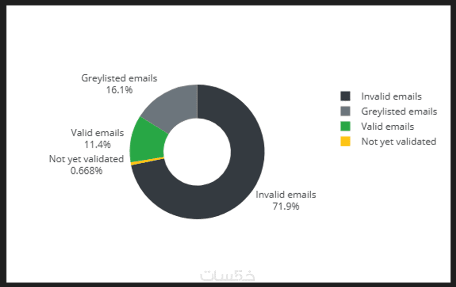 نوفر مقابل سعر الخدمة التحقق إلى غاية 2000 بريد الكتروني بالاضافة إلى رسومات بيانات تحليلية لقائمة البريدية مثل (نسبة أكبر 5 مزودي خدمة بريد الكتروني في قائمتك، نسبة نتائج التحقق في قائمتك حسب الحالة، نسبة نتائج التحقق حسب الحالة لأكبر 5 مزودس خدمة في قائمتك)