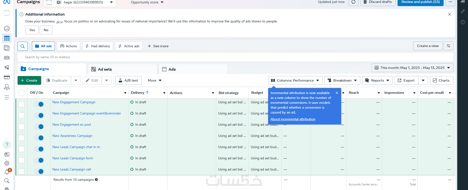 يتم تنفيذ الحملة من خلال حسابك الإعلاني.
