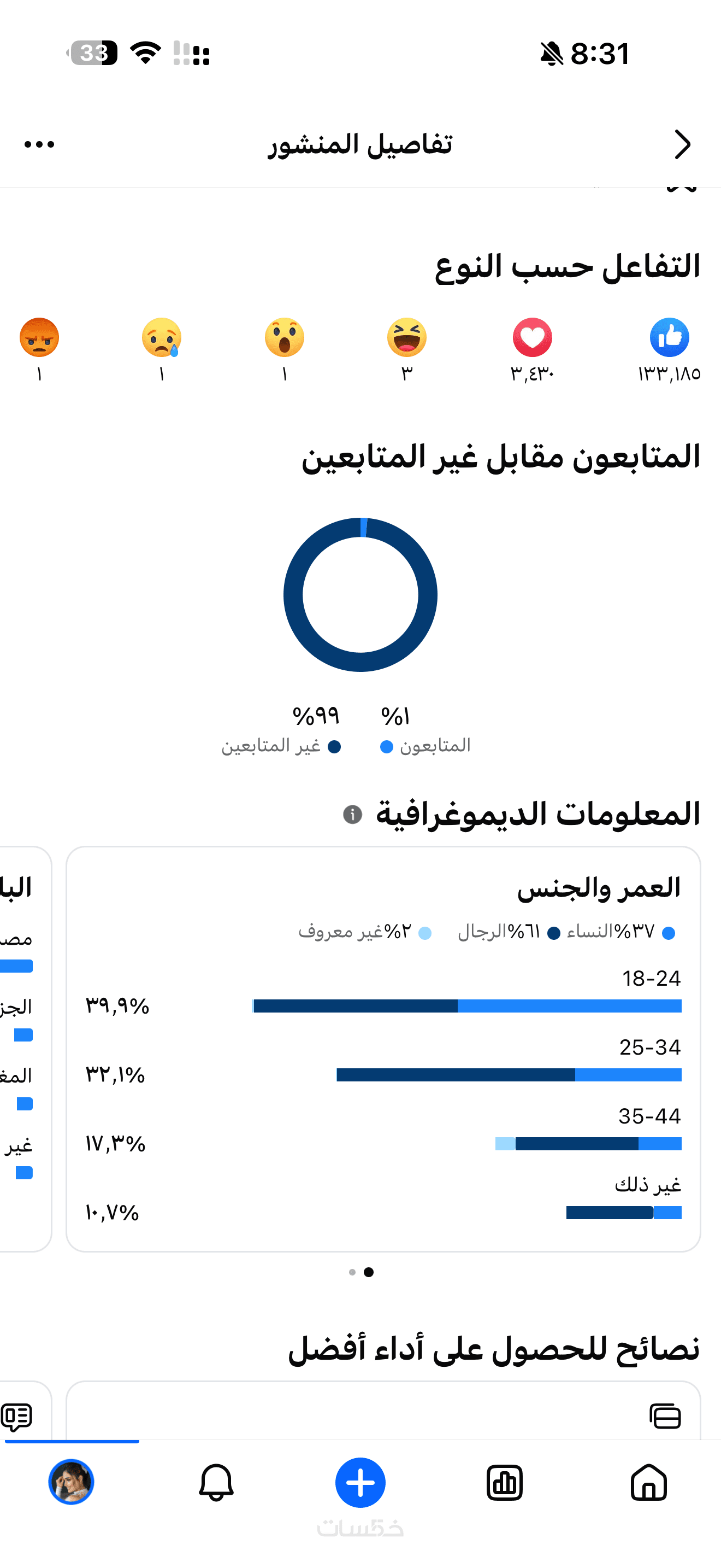لا يوجد ضمان بعدد لايكات أو تعليقات أو مشاهدات