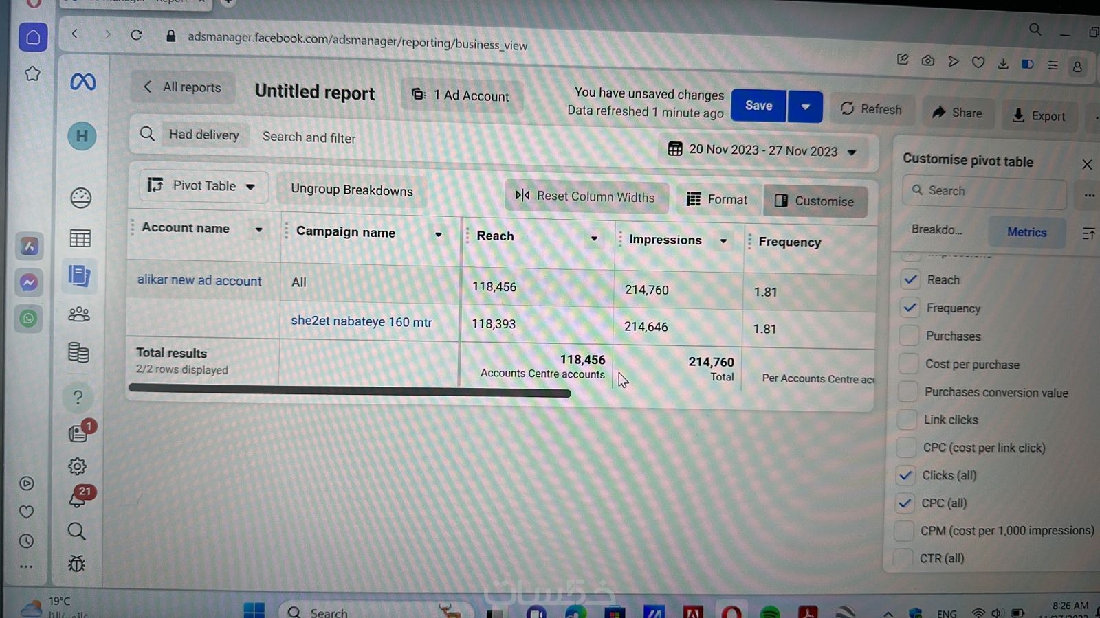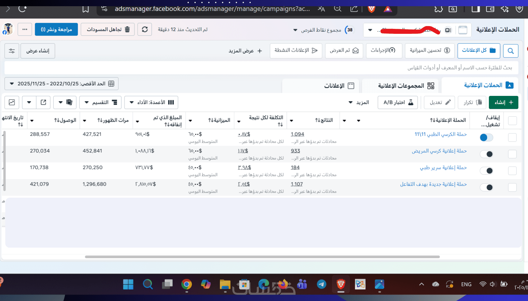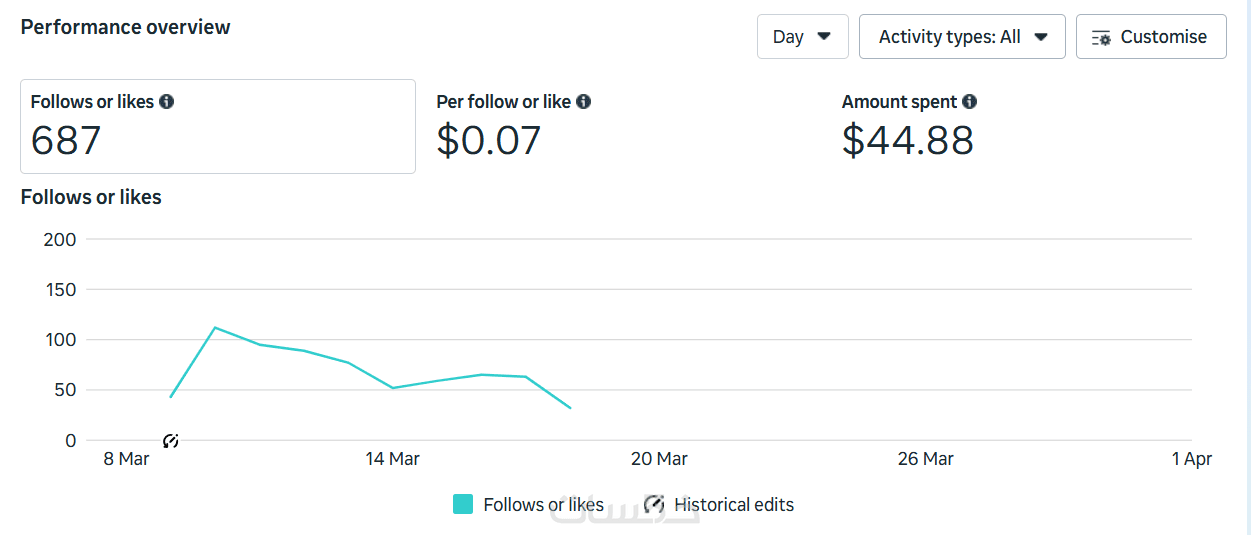 أي مرات ظهور إعلانك للمستخدم ويكلف تقريبًا 6.70 دولار لكل ظهور.