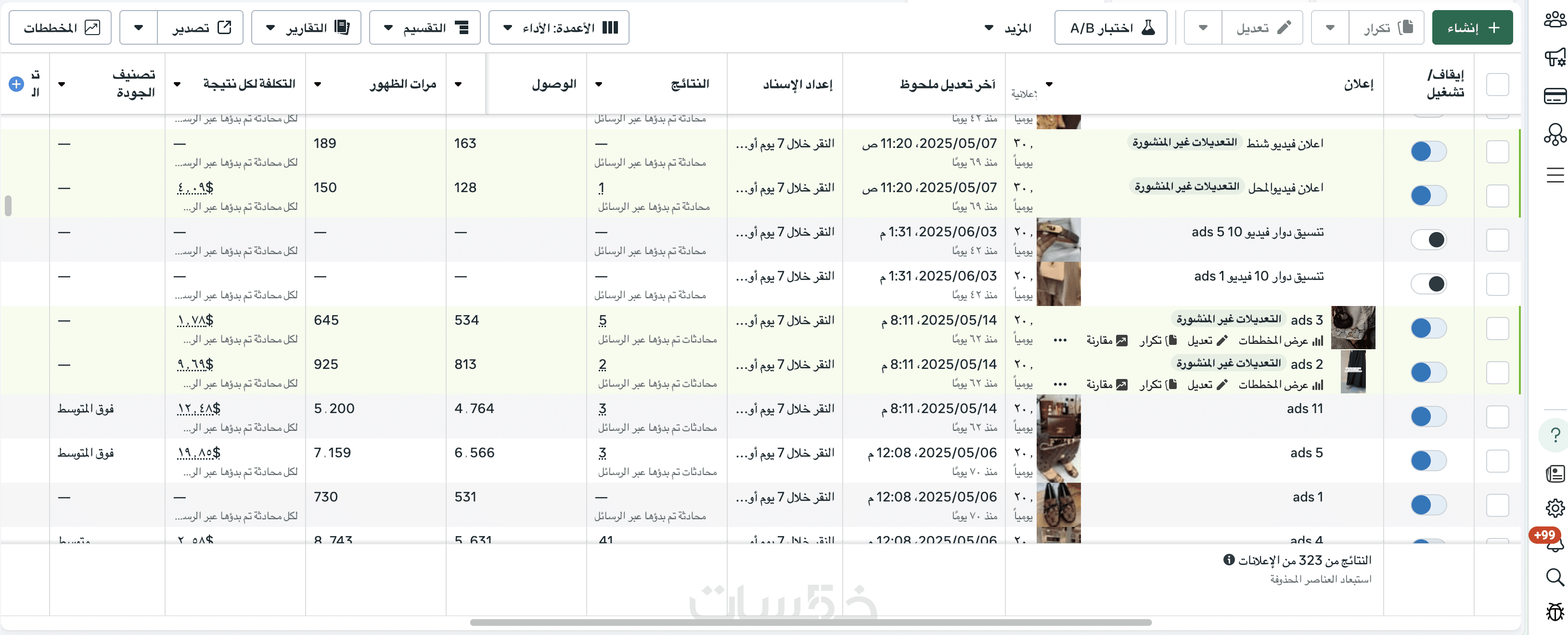 - إعلانات الريلز: