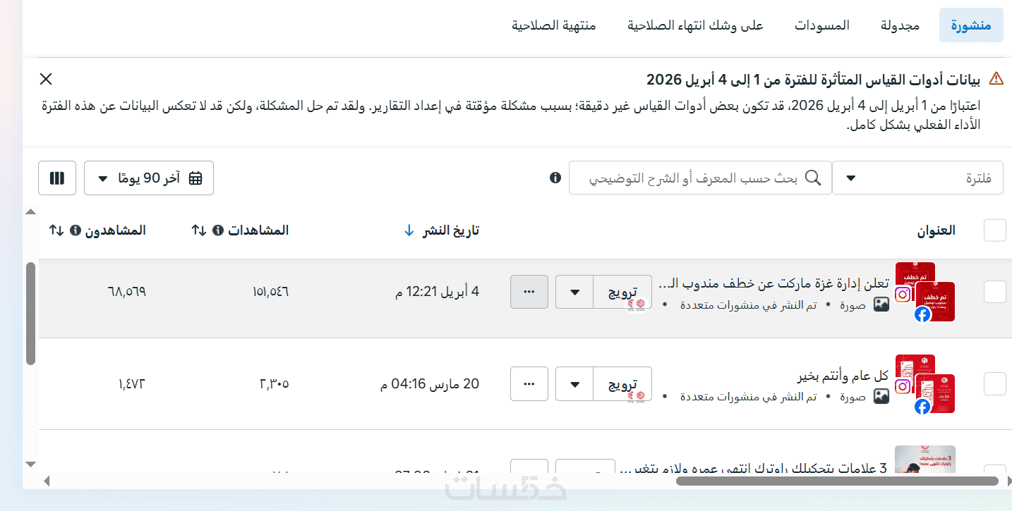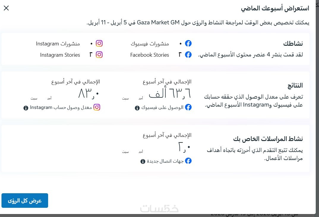 - إدارة كاملة لصفحات فيسبوك وإنستغرام لمدة أسبوعين