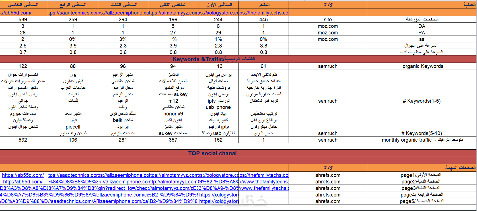 تقرير المنافسين يشمل ملف فيه افضل 5 منافسين يقدمون الخدمة او المنتجات الخاصة بك بالاضافة ستحصل على 25 كلمة مفتاحية مستهدفة
