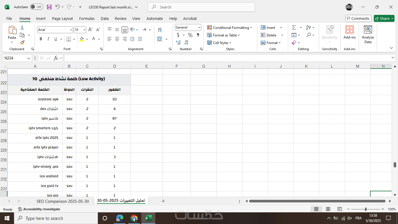 تصنيف الكلمات المفتاحية حسب نوع الكلمة (بيعية، بحثية، زيارات).