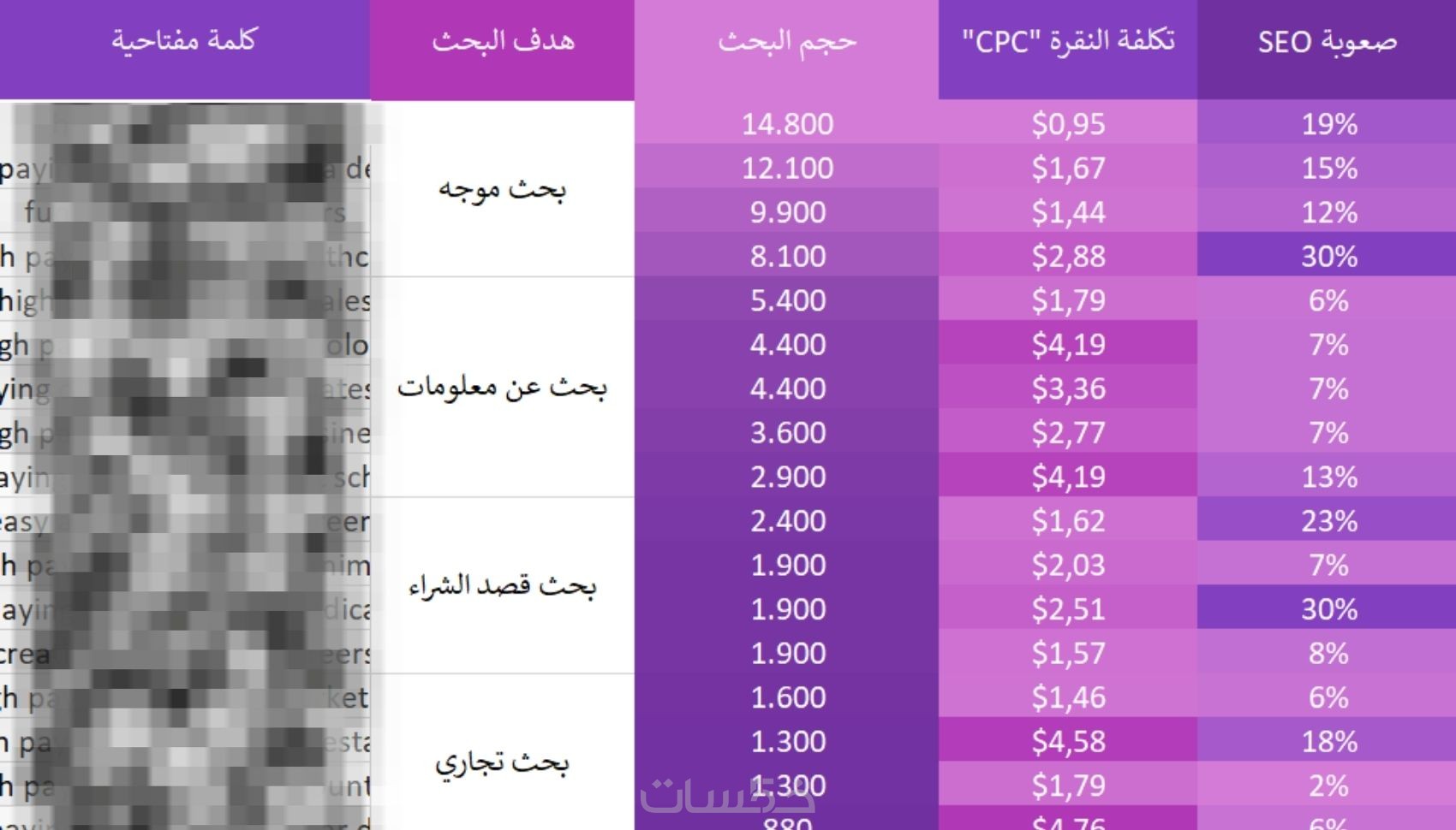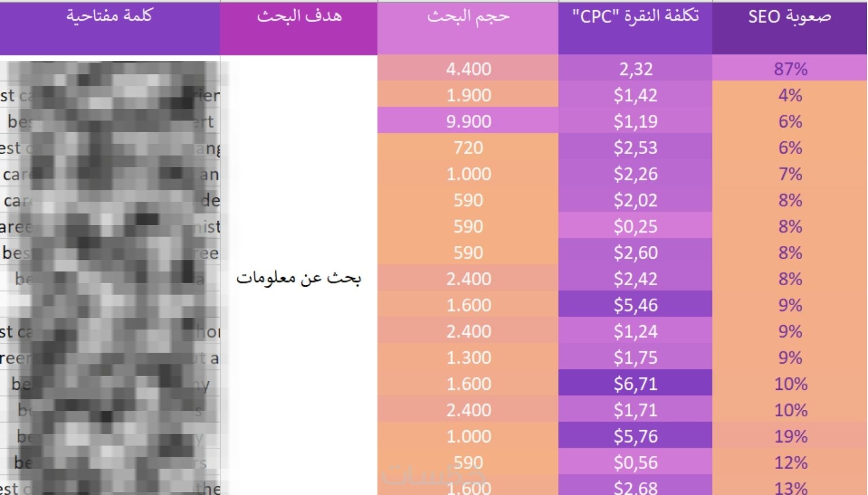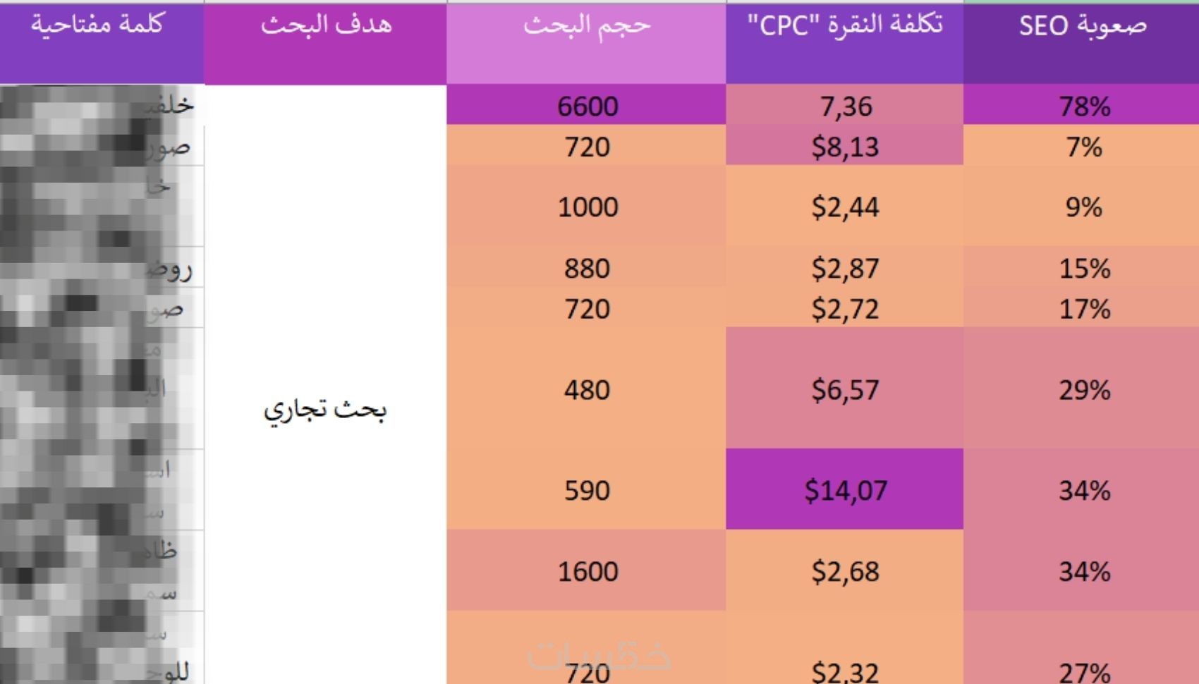 - حجم البحث، مستوى المنافسة، وإمكانية الترتيب