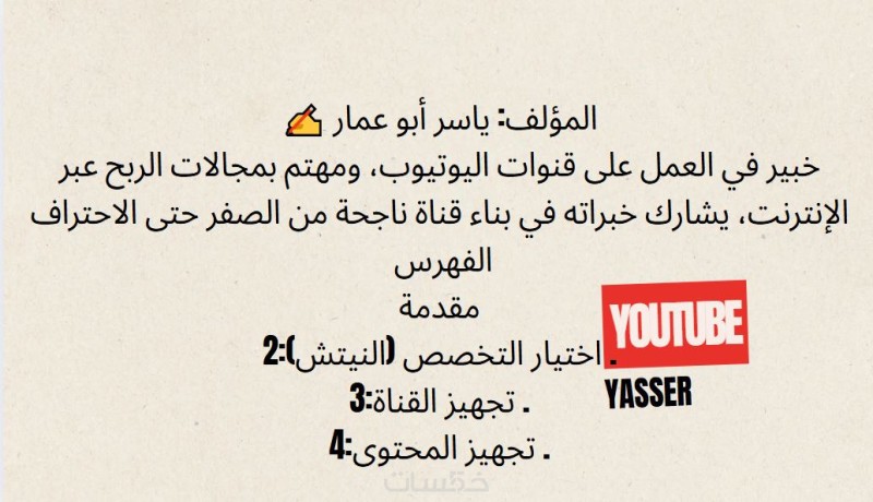 الكتاب من إعدادى الشخصى بالكامل وخلاصة خبرات كثيرة منها التعامل مع مئات قنوات اليوتيوب بخمسات.