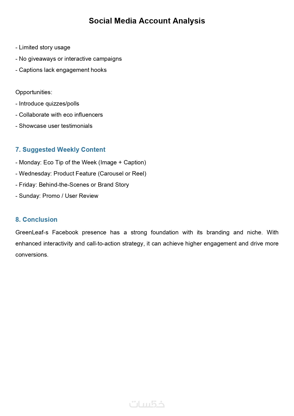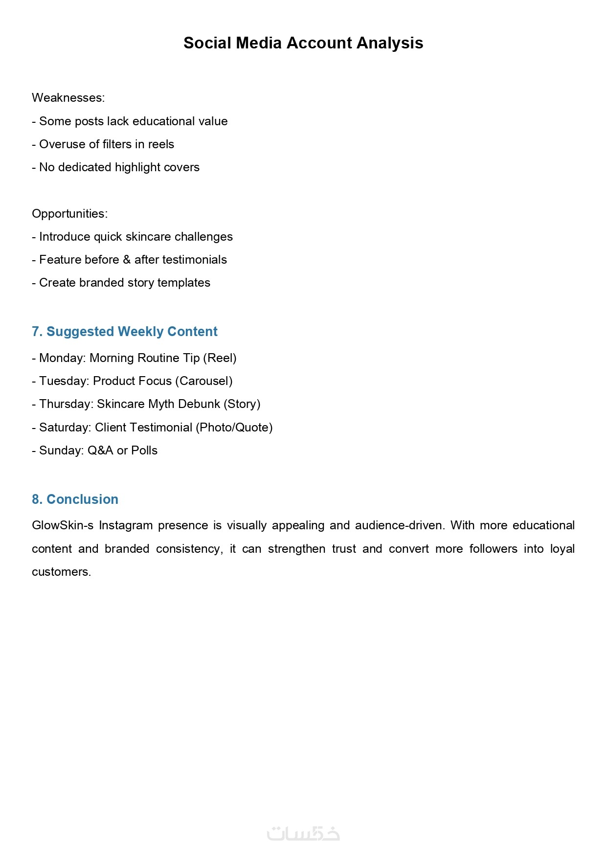 + خطة محتوى شهرية بناء على التحليل