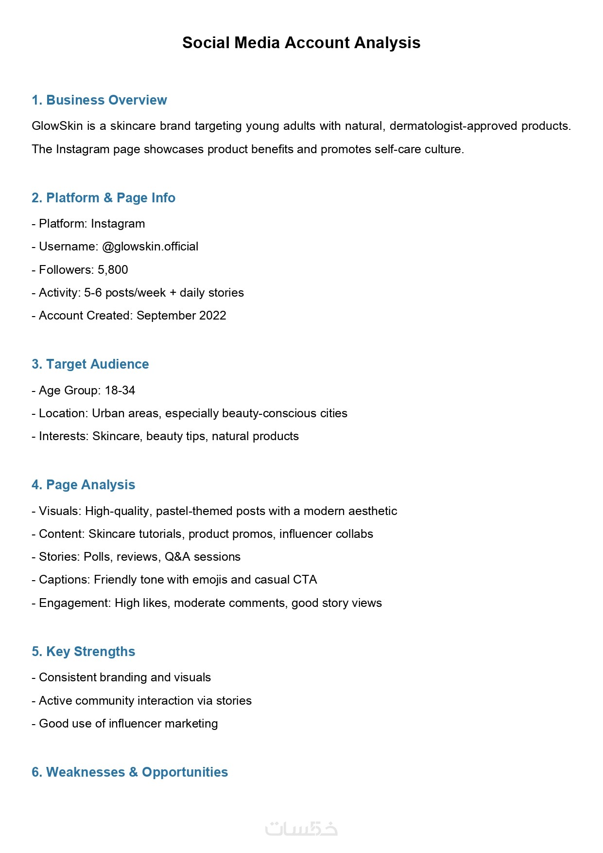 من خلال هذه الخدمة، أقدم لك تحليلا احترافيا لحسابك على مواقع التواصل الاجتماعي، يتضمن توصيات دقيقة وأفكارا قابلة للتنفيذ، تساعدك على تحسين الأداء بشكل فعّال ومنظم.