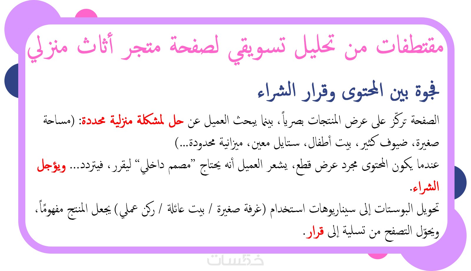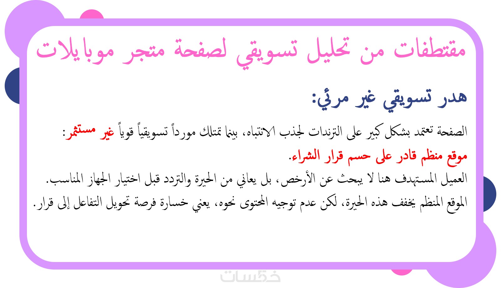 ١. تشخيصاً استراتيجياً واضحاً يشرح ما المشكلة أو الهدر الأساسي في الصفحة حالياً، ولماذا لا تتحقق النتائج المتوقعة.