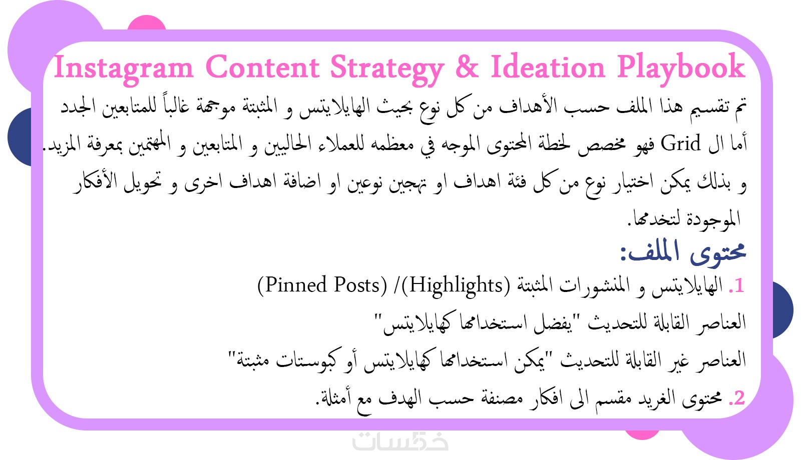 تنظيم البوستات المثبّتة والهايلايتس وتوزيع المحتوى وفق هدف واضح (مبيعات / ثقة / تفاعل)، قبل كتابة محتوى