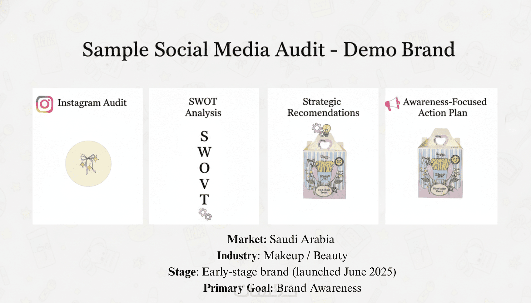 أقدّم خدمة تدقيق احترافي لحساباتك على وسائل التواصل الاجتماعي بهدف تحسين الأداء الرقمي وتحقيق أهداف تسويقية واضحة وقابلة للقياس. تشمل الخدمة تحليلًا معمّقًا للحسابات الحالية من حيث استراتيجية المحتوى، جودة المنشورات، مستوى التفاعل، سلوك الجمهور، والحملات المدفوعة إن وُجدت، مع تقييم شامل للأداء العام. الهدف هو تحويل حساباتك من مجرد حضور رقمي إلى أدوات تسويق فعّالة ترفع التفاعل، تعزّز الوعي بالعلامة التجارية، وتدعم النمو.