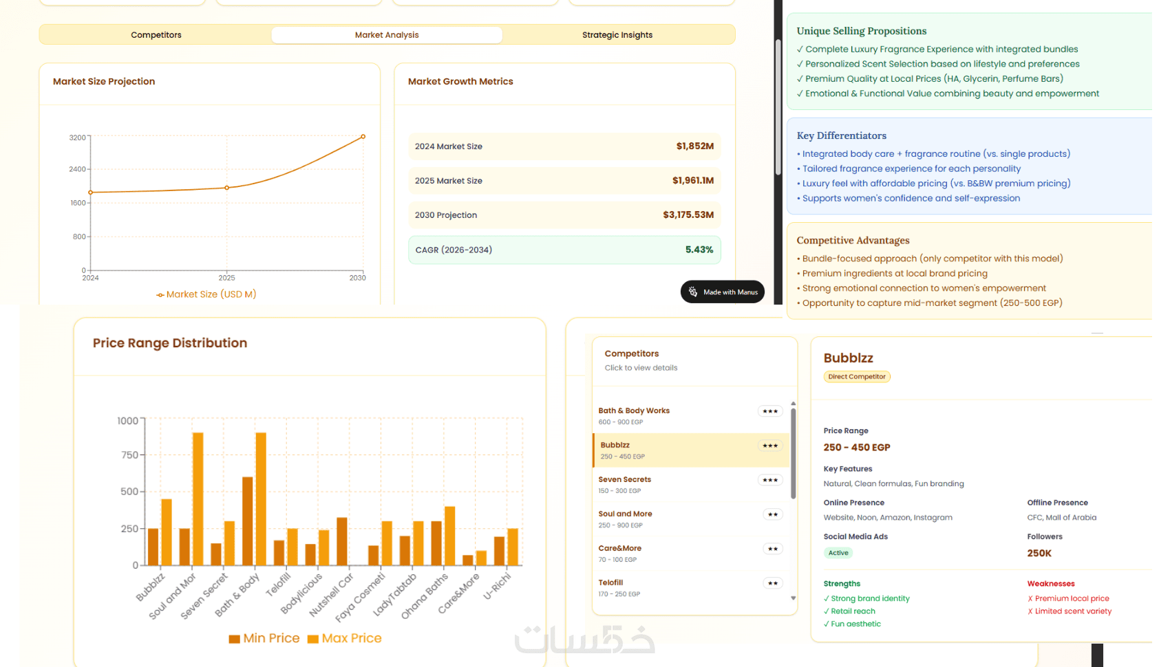 أقدم لك دراسة تسويقية متكاملة (بالعربية أو بالإنجليزية حسب الطلب ) تساعدك على فهم السوق و المنافسين وكيف تبني هوية تجارية قوية قادرة على النجاح والنمو