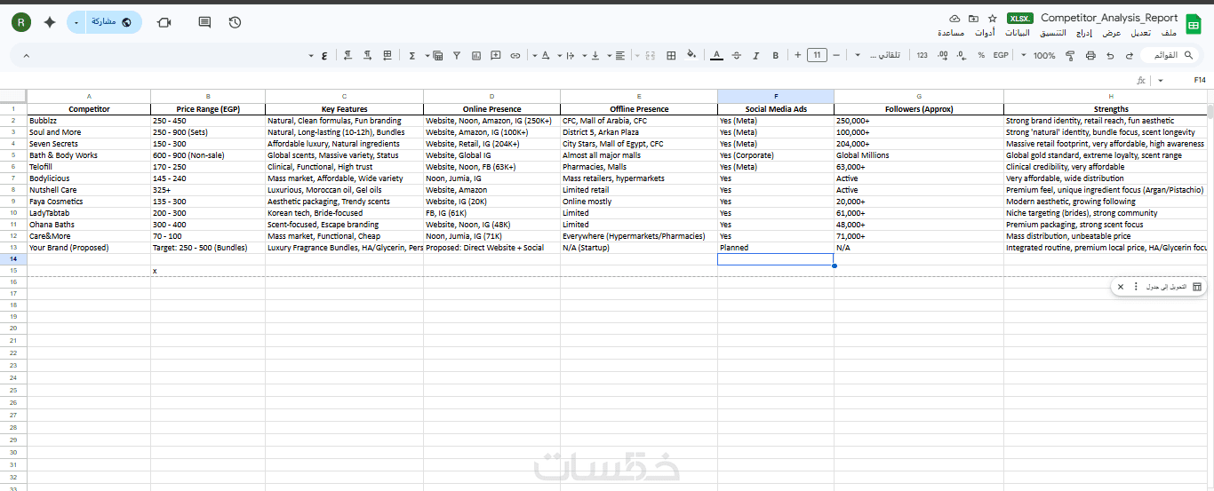 يحتوى على التحليل الشامل للمنافسين من جميع الجوانب