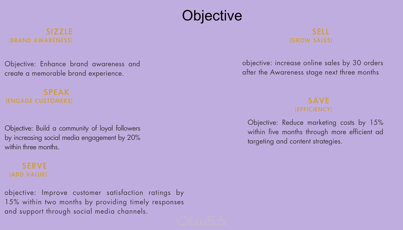 الهدف من هذه الخطة هو زيادة ونجاح العلامة التجارية عبر استراتيجيات فعالة وموجهة تسهم في تحقيق نتائج ملموسة ومستمرة