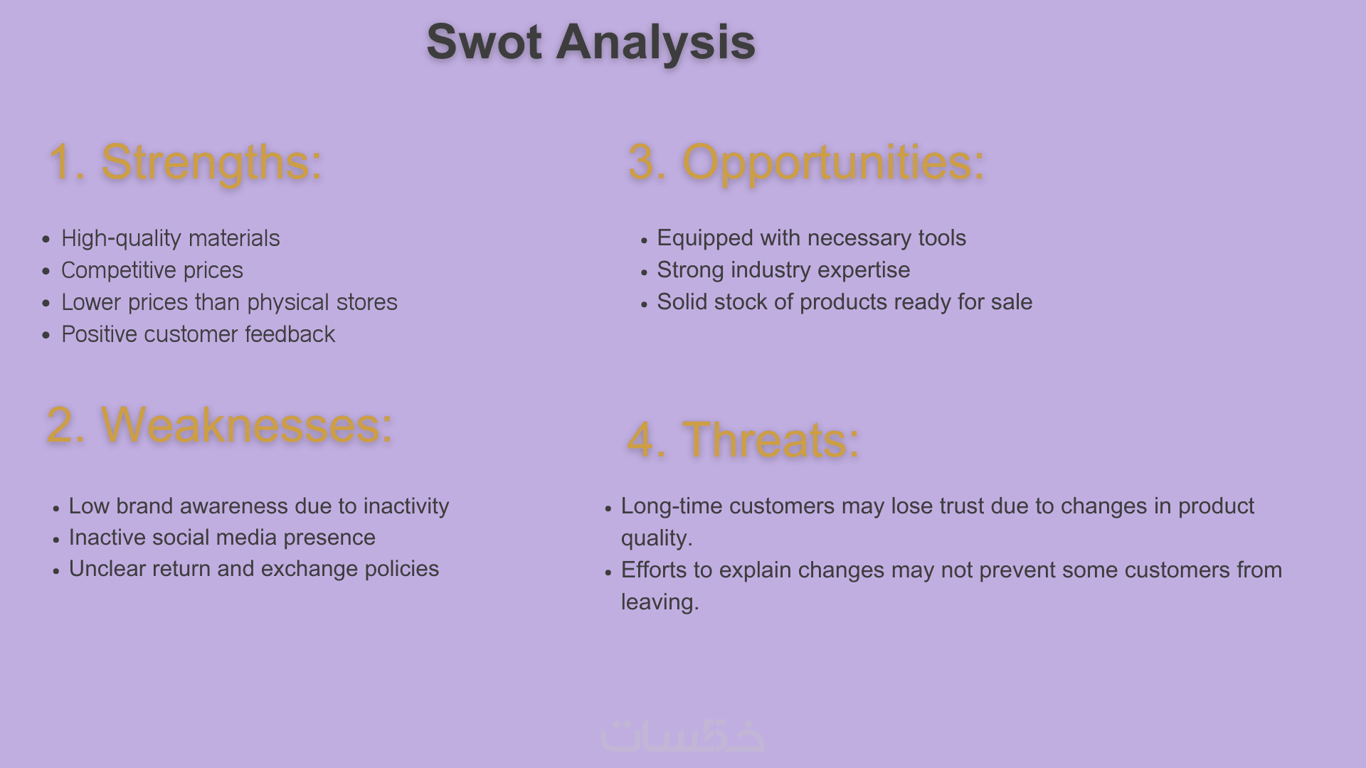 2-تحليل السوق (دراسة المنافسين, تحليل swot, تحليل العملاء)