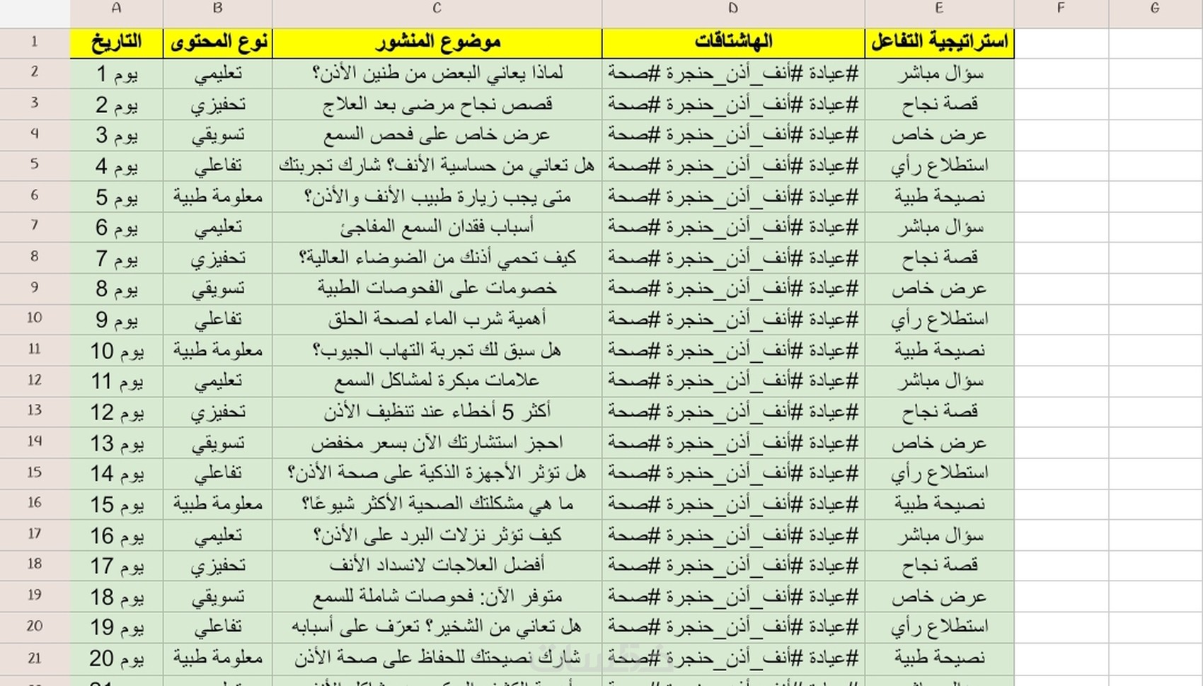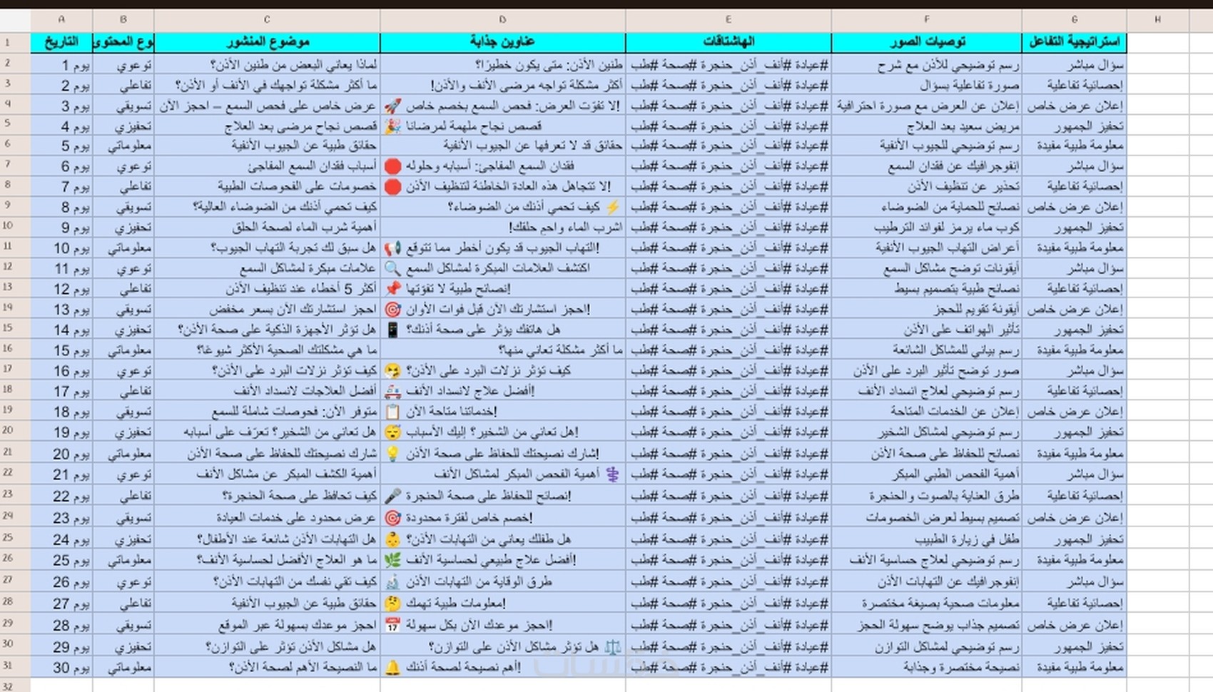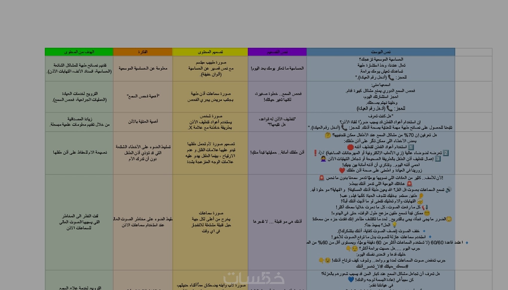 تنظيم المحتوى في جدول واضح لتسهيل النشر و المتابعة.