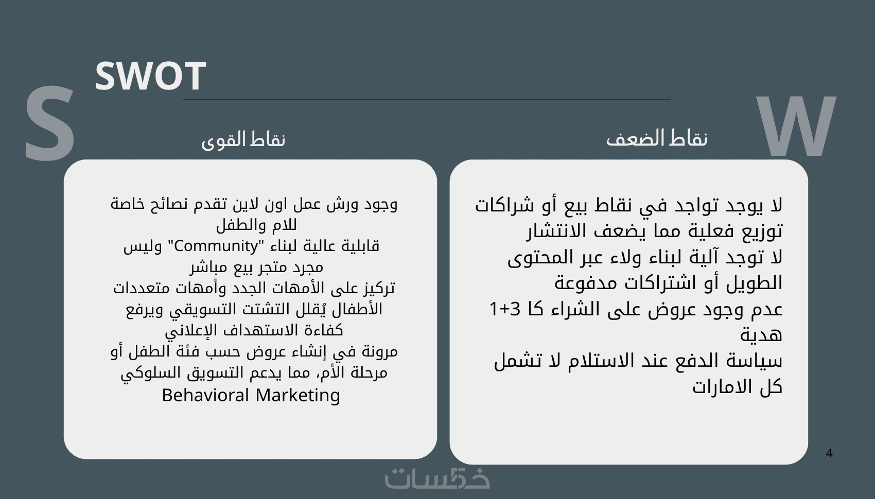 تقديم دراسة عن اهم نقاط القوى والضعف وتحليل المنافسين