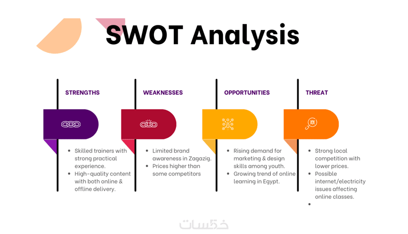 هتتعرف على نقاط القوة والضعف والفرص والتحديات اللي بتواجه نشاطك التجاري.