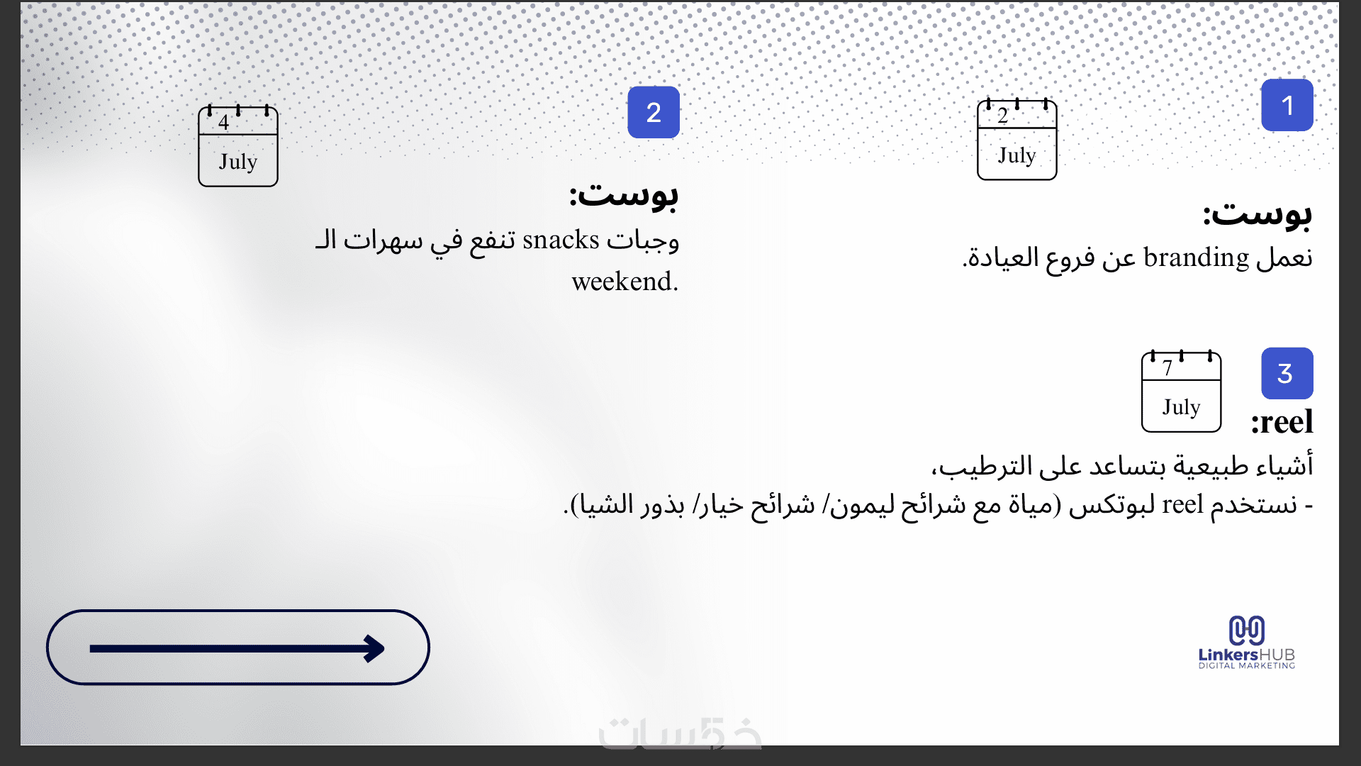 - كتابة أفكار المحتوى الرئيسية لكل منصة.