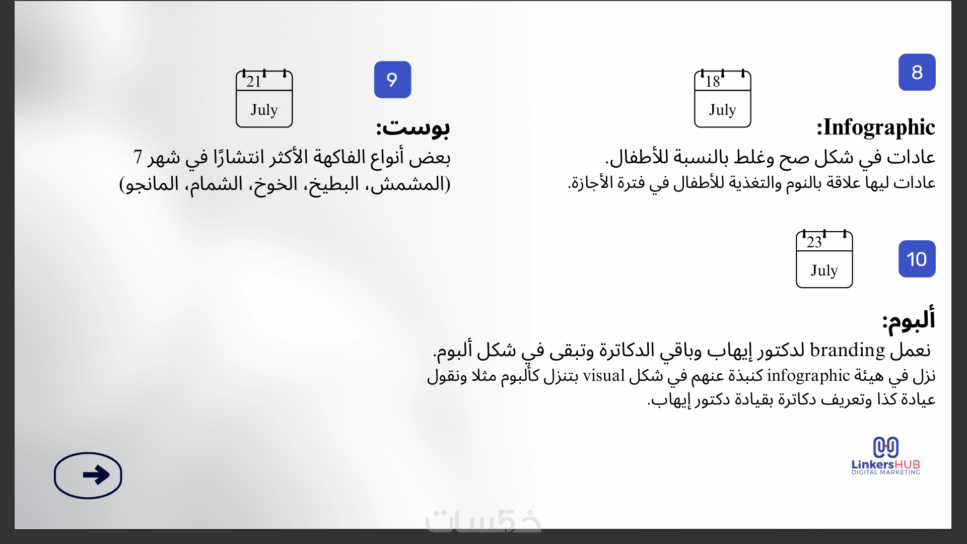 إضافة 8 قطع محتوى شهري لمنصة تواصل اجتماعي.