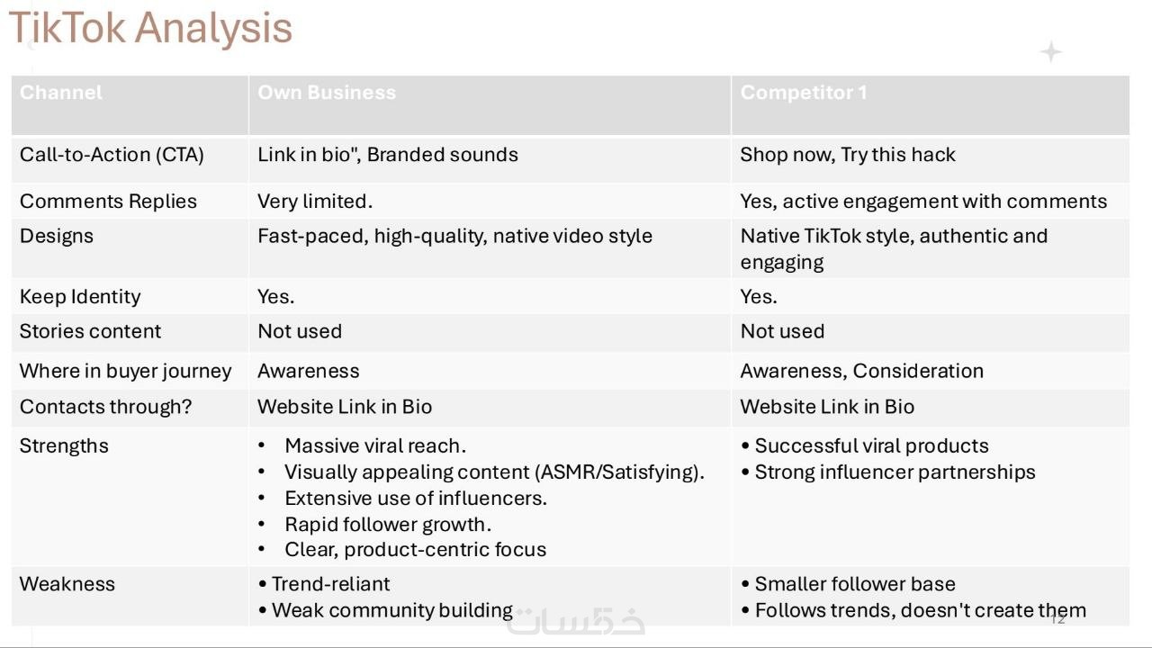 تحليل منصات التواصل الاجتماعي ونقاط القوة والضغف الخاصه ب 3 منافسين لك وكيفية التغلب عليهم فالسوق
