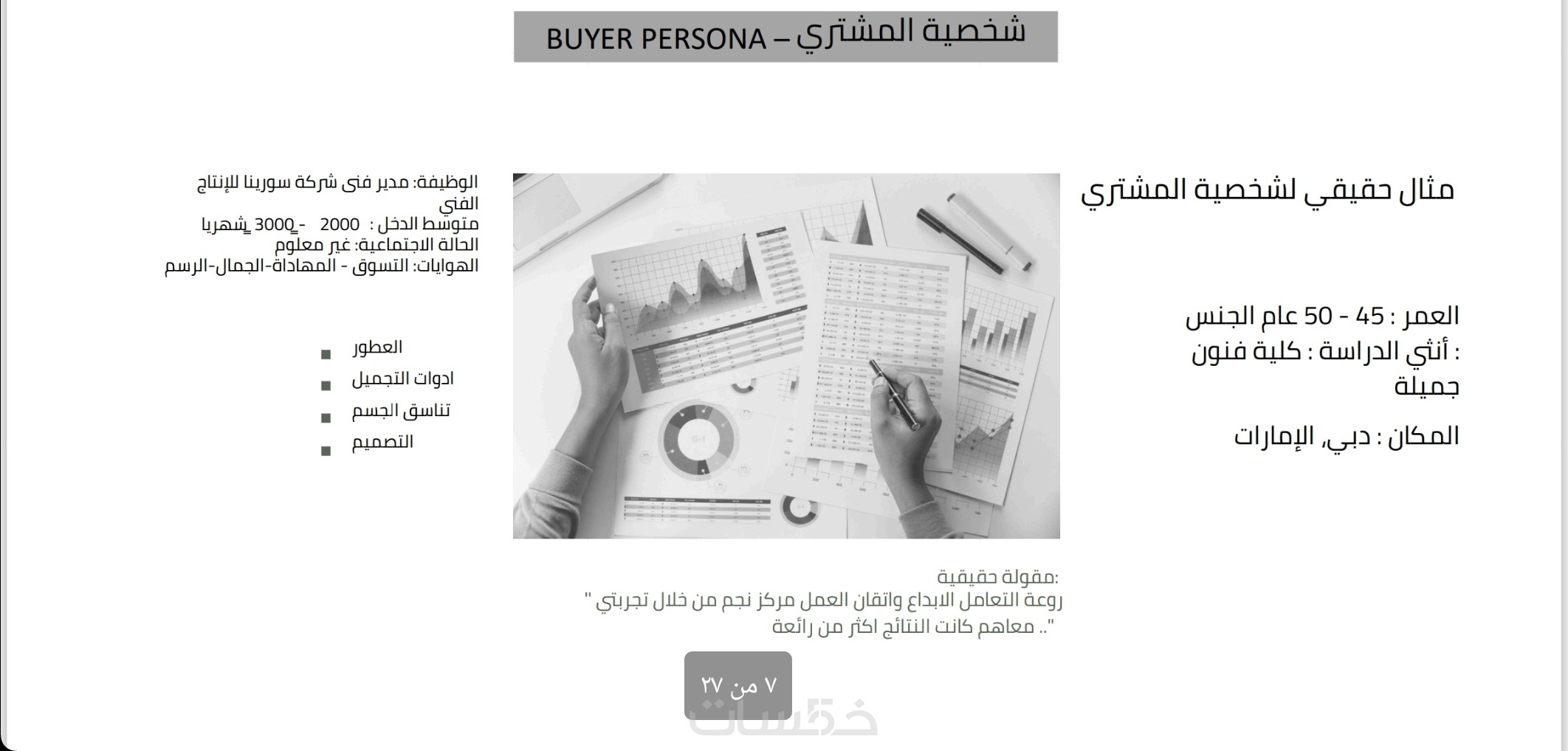 ١- تحليل السوق ( المنافسين ، تحديد الجمهور ، BUYER PERSONA شخصية المشتري ،الخ)
