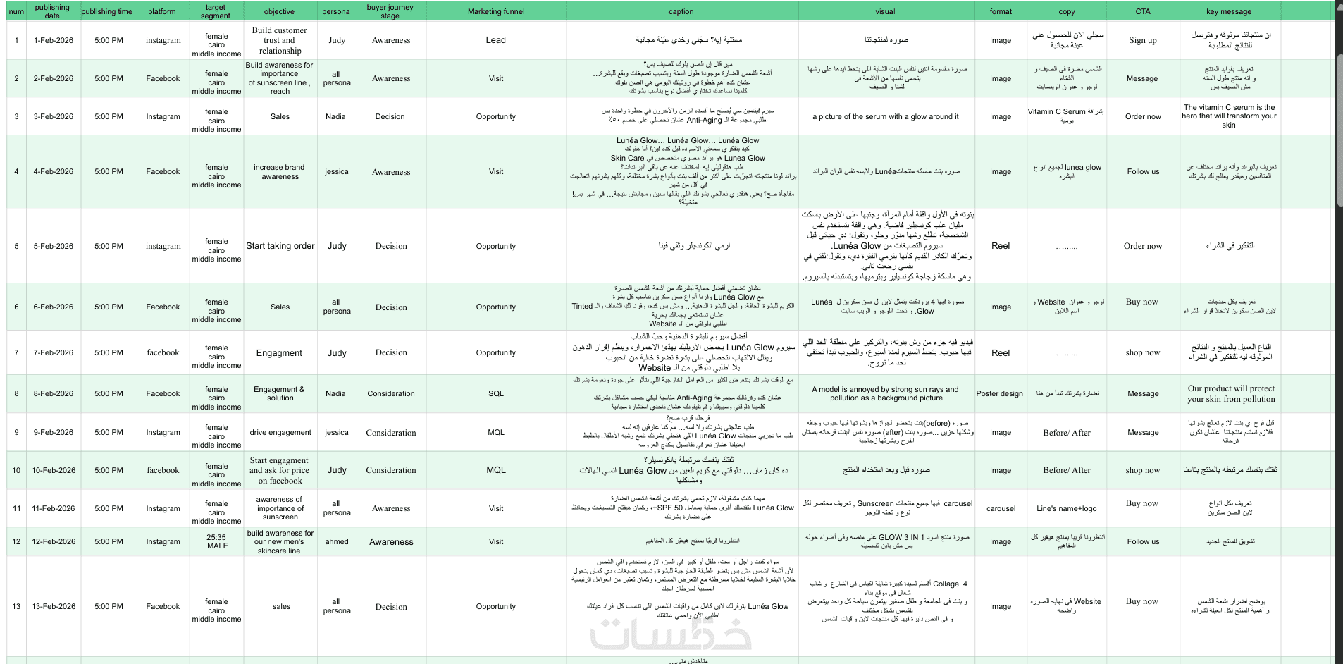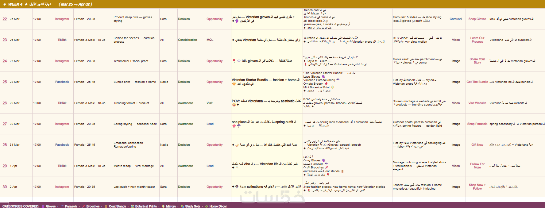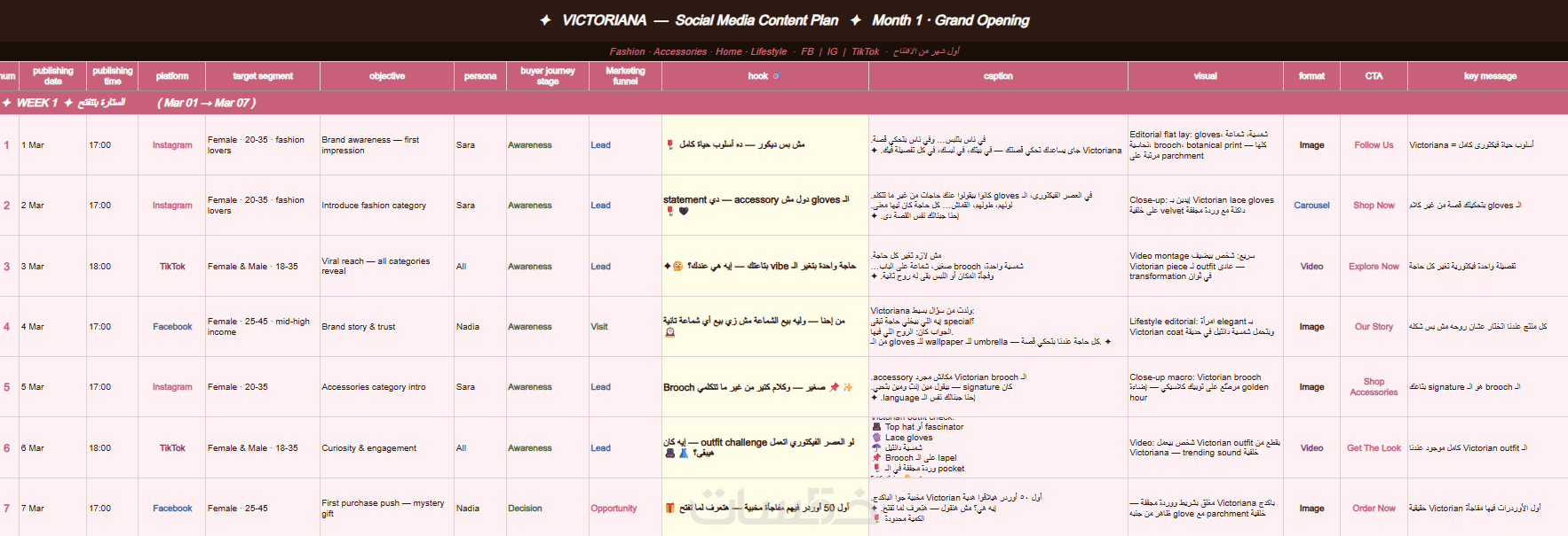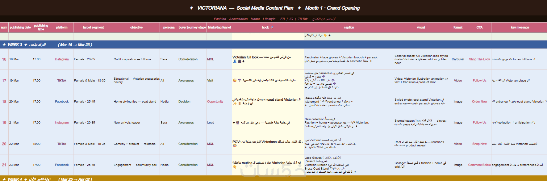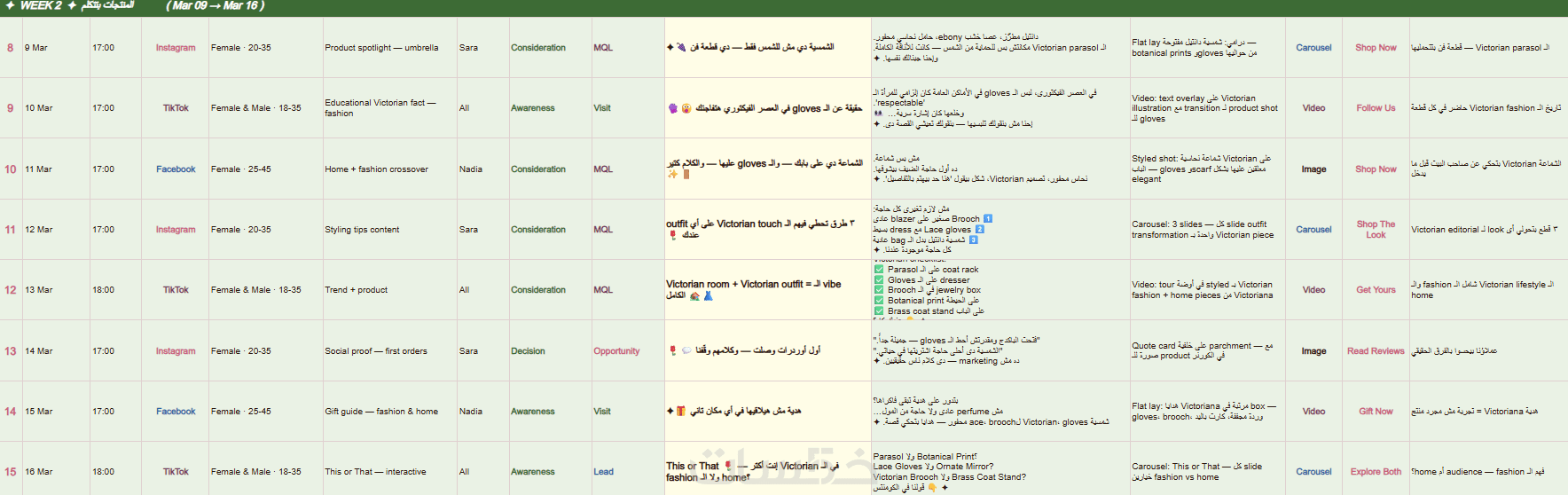 خطة محتوى (Calendar): جدول زمني لأفكار المحتوى التي ستنشرها.
