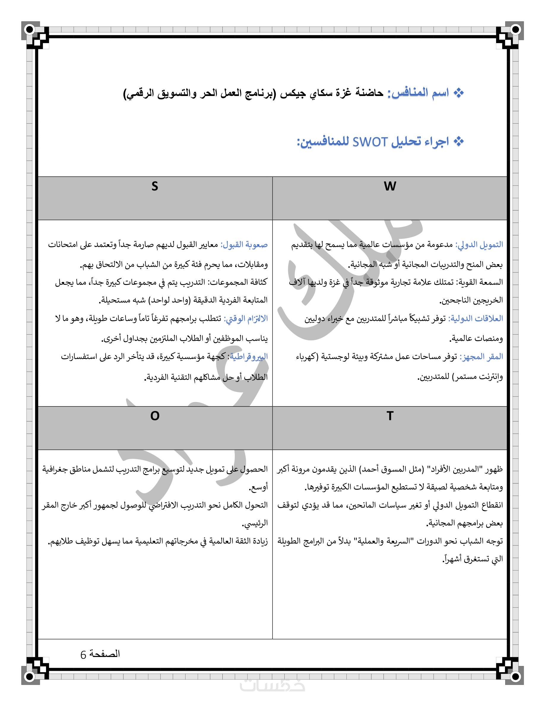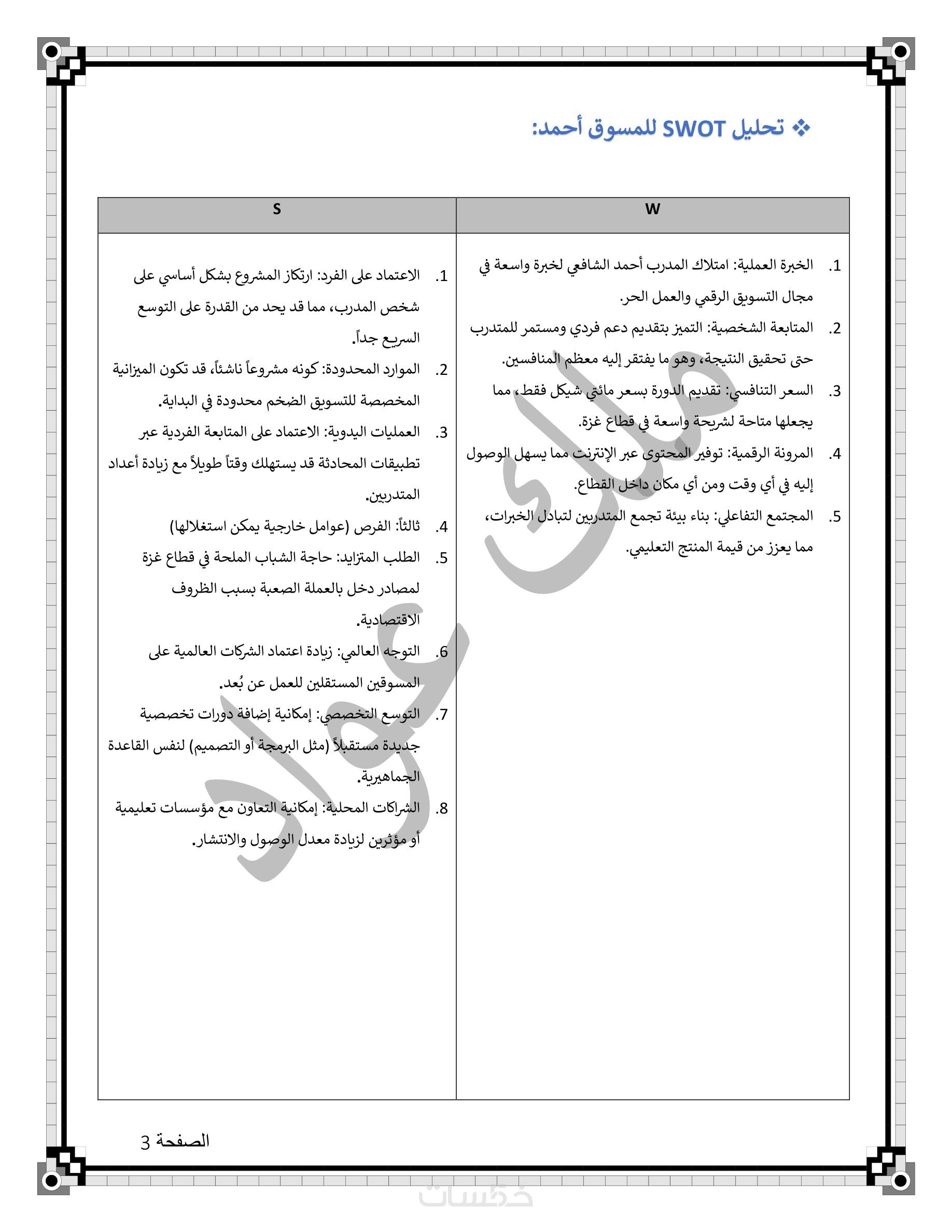1. تحليل شامل لمشروعك ونقاط القوة والضعف