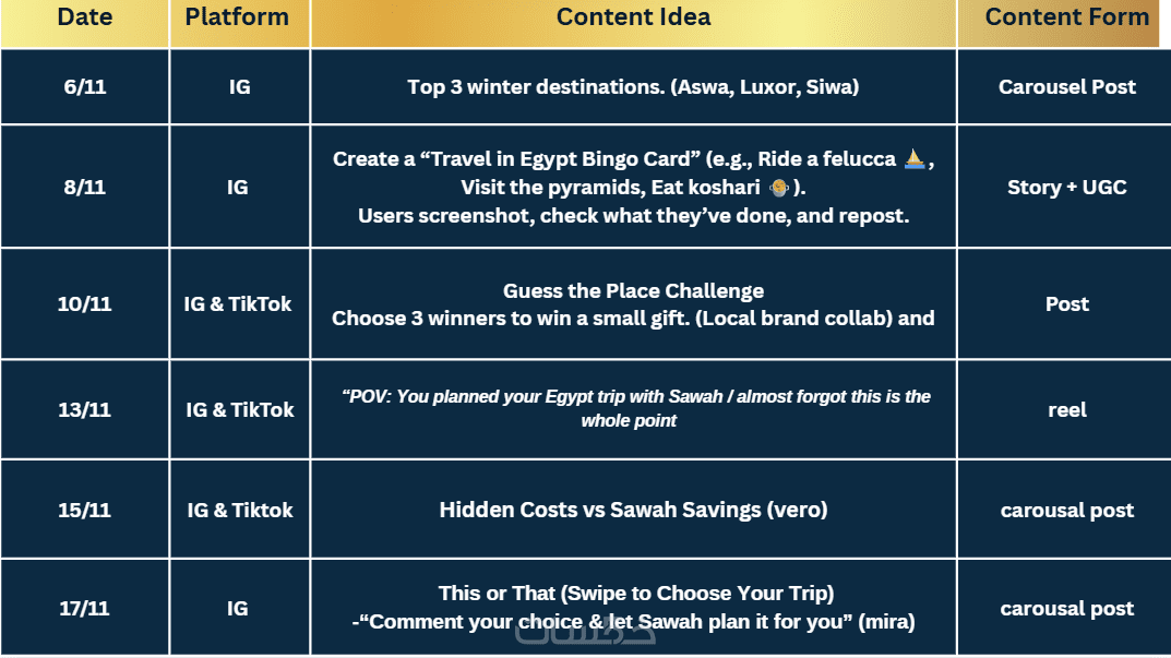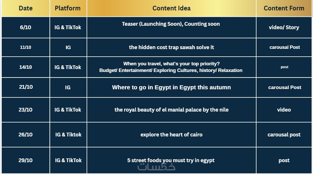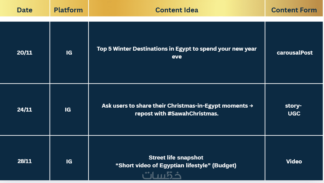 إعداد Content Calendar مع كتابة الأفكار والكابشنات