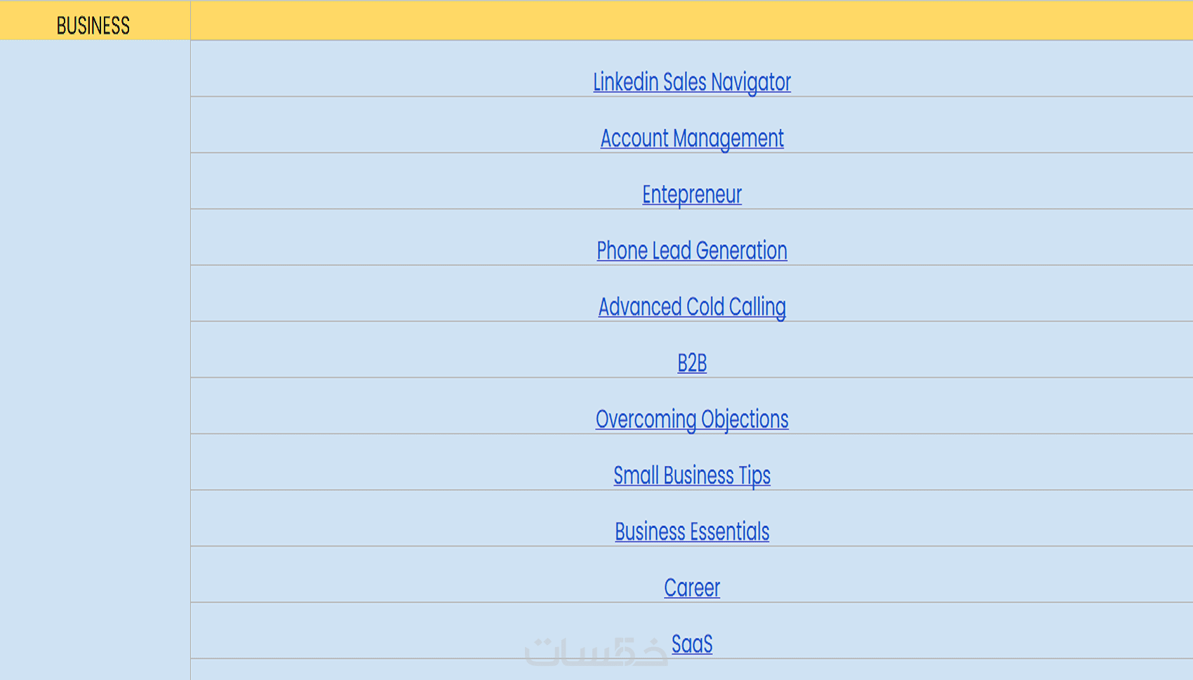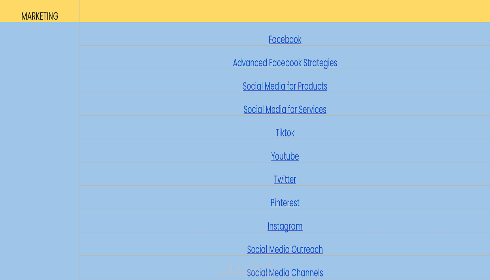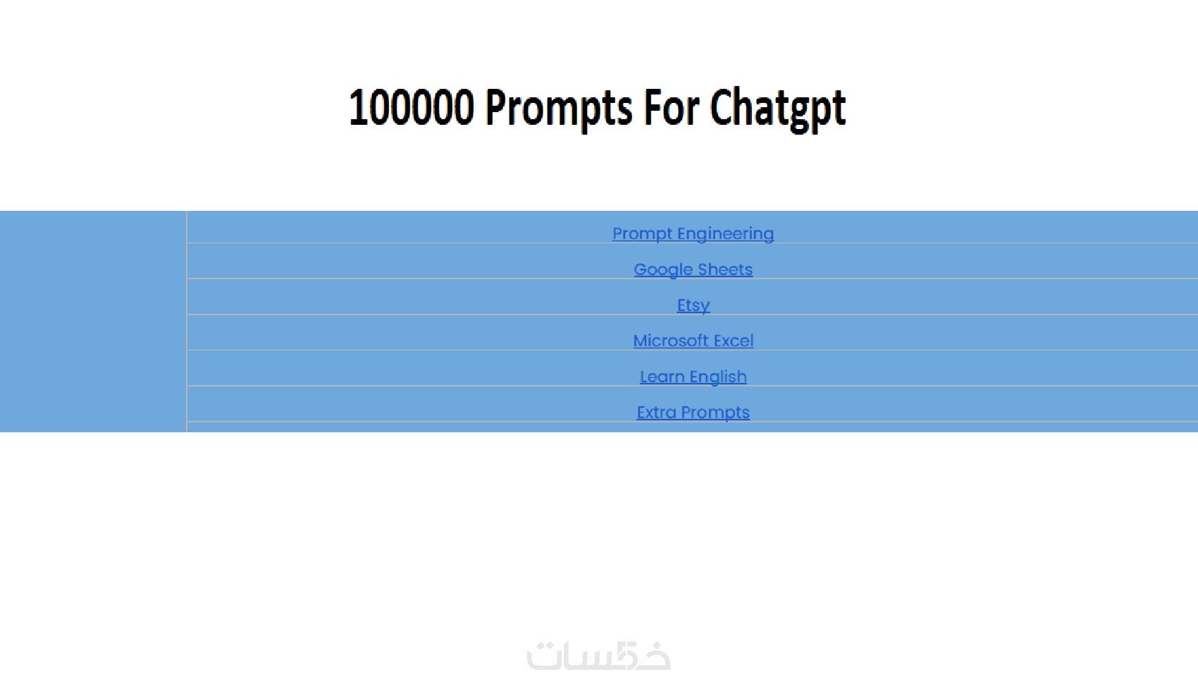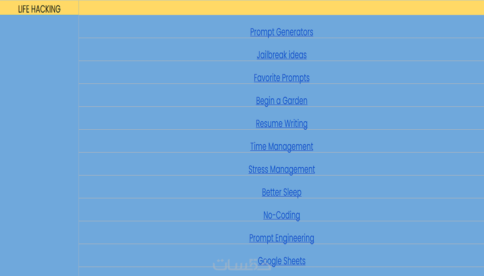 يتم تنظيمه وفقًا للمجالات المختلفة (كتابة محتوى، تسويق رقمي، برمجة، تعليم، إدارة، إلخ).