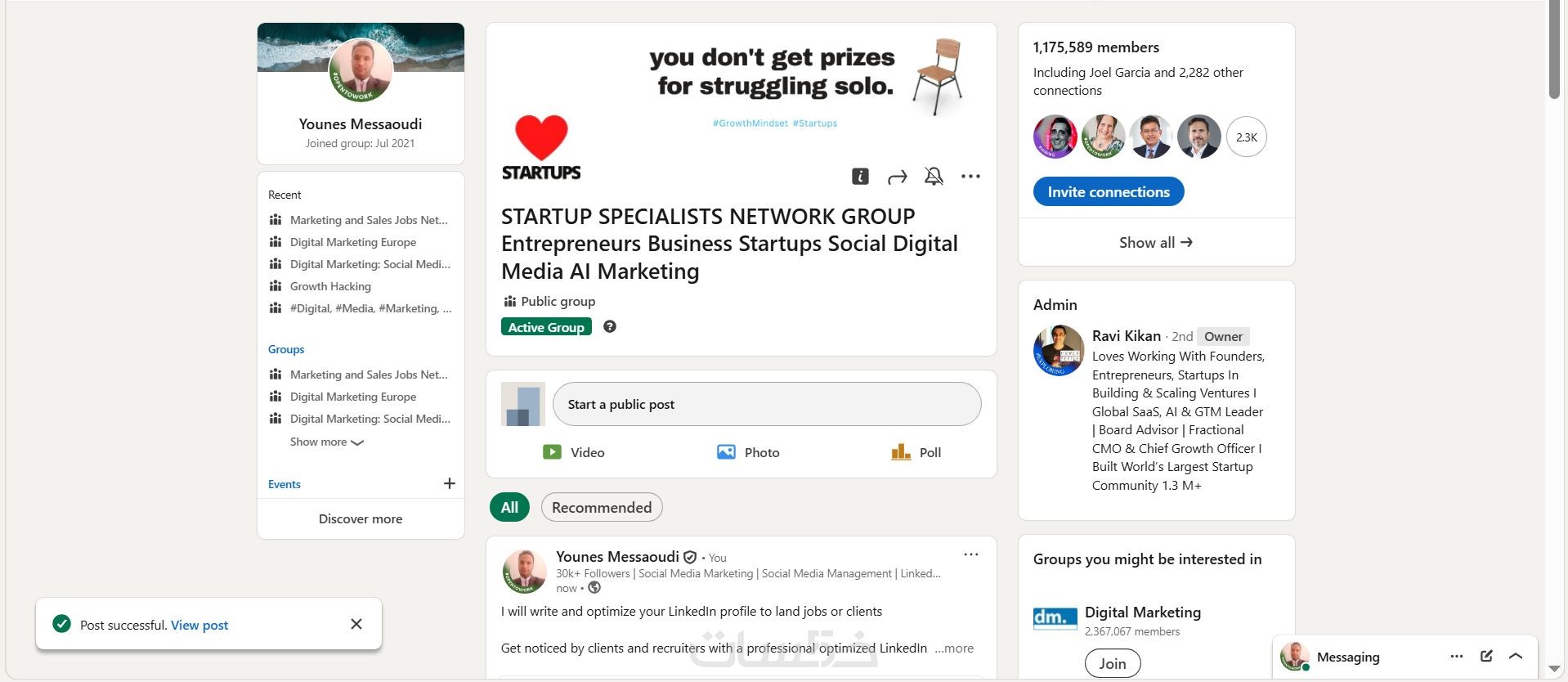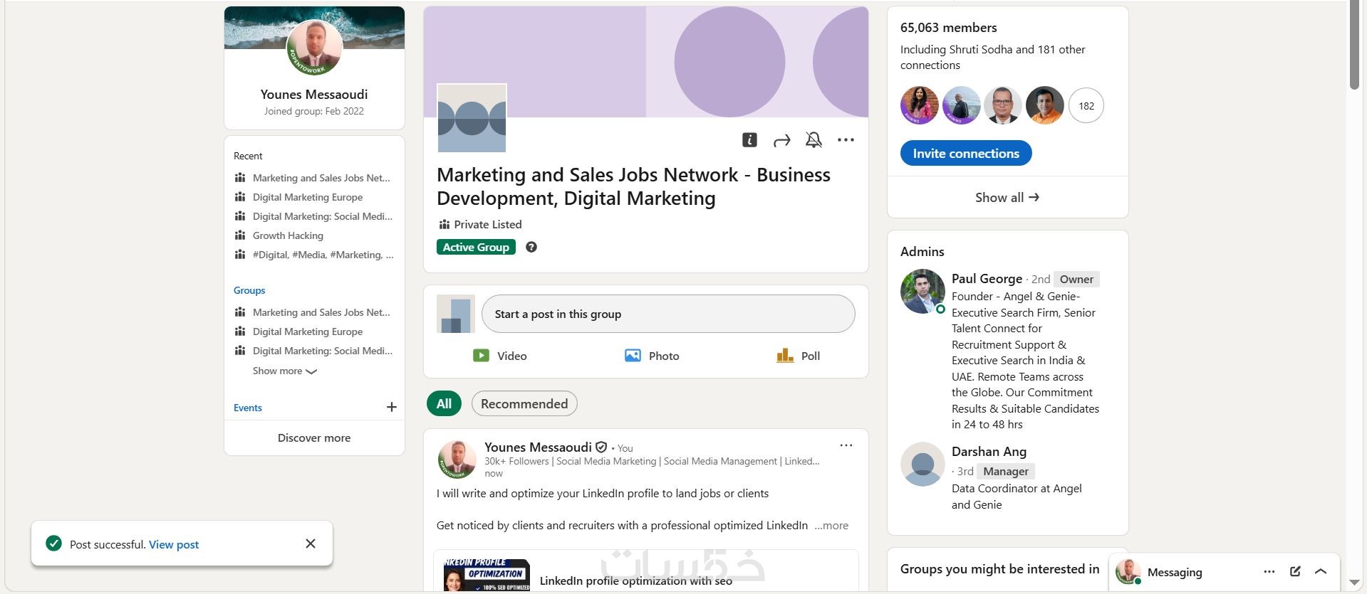 لقد قمت بزيادة متابعي ملفي الشخصي على لينكدان من 0 إلى 30 ألف اتصال بشكل عضوي، يمكنني الترويج للمحتوى الخاص بك على ملفي الشخصي على لينكدان الذي يبلغ 30 ألفًا، المحتوى هو عبارة عن نص أو فيديو على حسب نوع المحتوى لديك و ليس هنالك حد للكلمات غير محدودة سأقوم بالنشر على الفور مدة بقاء الإعلان سينفذ في يوم واحد