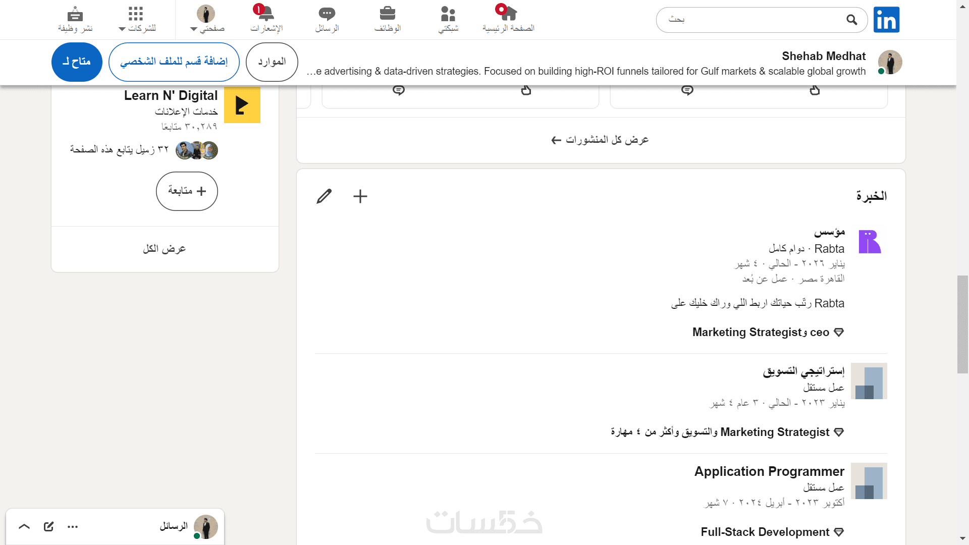 تحسين حساب لينكدان بشكل اساسي ترتيب خبرات و المهارات بشكل اوضح