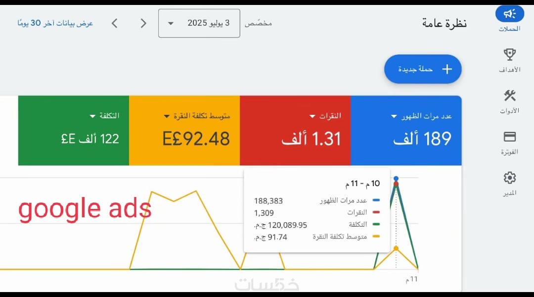 ملاحظة: تشمل الخدمة إعداد ومتابعة الإعلان لـ 3 أيام فقط (لا تشمل ميزانية الإعلان لجوجل). لطلب إدارة أطول، راجع التطويرات.