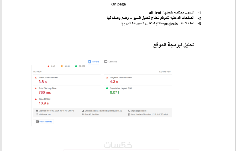 1- تحليل سيو شامل لموقعك لمعرفة المشكلات التي تسبب عدم ظهور موقعك في الصفحات الأولى من جوجل.