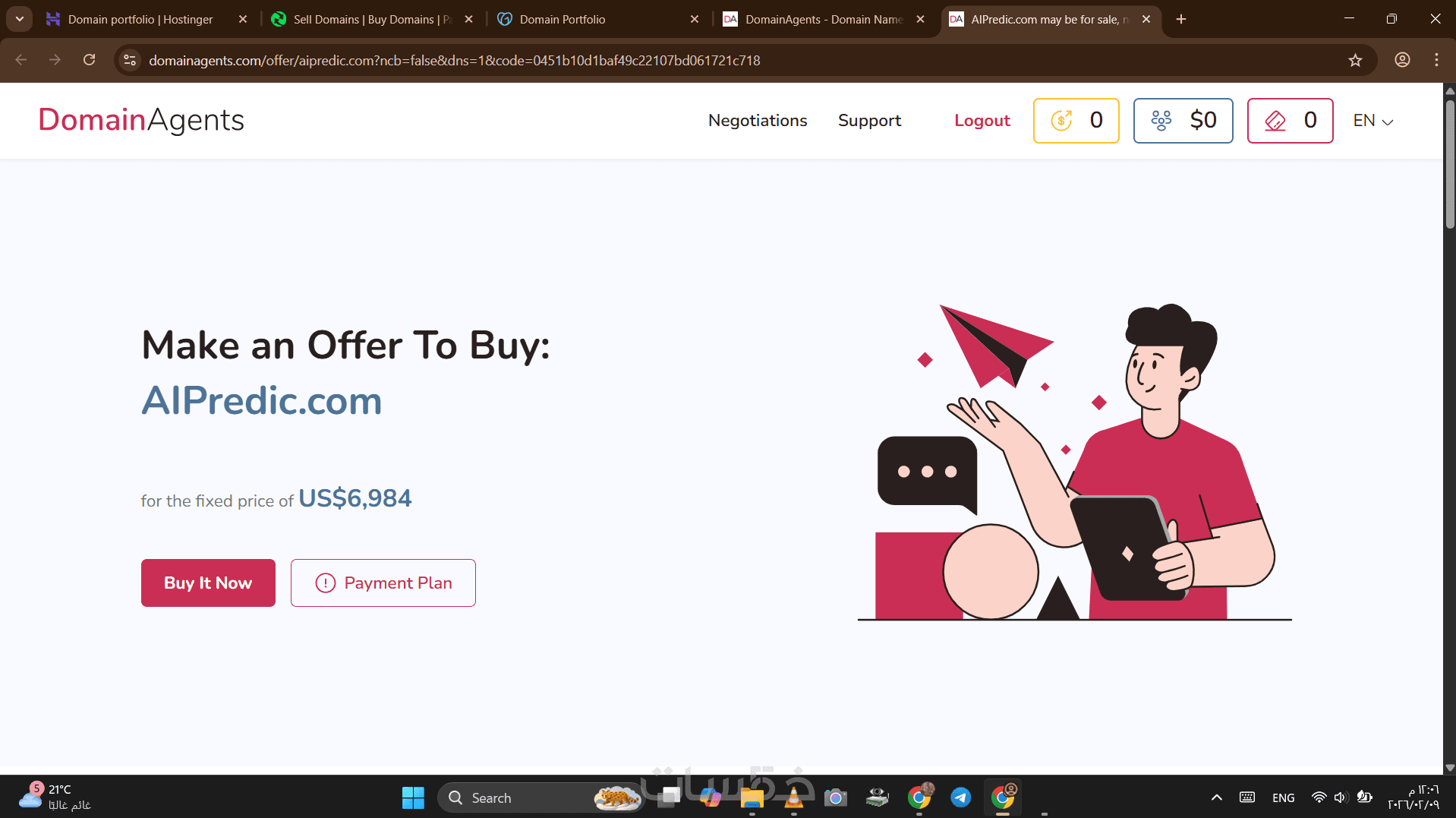 تجارة الدومينات هي واحدة من افضل واربح المجالات حاليا لذا اذا كنت تمتلك دومين جيد فانت تمتلك أصل رقمي استثماري يأتيك بارباح اذا تم بيعه بسعر مناسب لكن هل الدومين الذي تملكه جيد ام ضعيف هل سيأتي بسعر عالي عند بيعه أم لا هل له فرصة في البيع ام لا كل هذا أجيبك عليه في تقرير مفصل عن دومينك بعد دراسته جيدا ومعرفة تاريخه وعدد مرات سقوطه ونقاط القوة والضعف واعطيك السعر المناسب وكذلك المنصات التي ستعرض دومينك فيها لتحصل علي مبيعات جيدة ان شاء الله مع توصيات اضافية ان تطلب الامر
