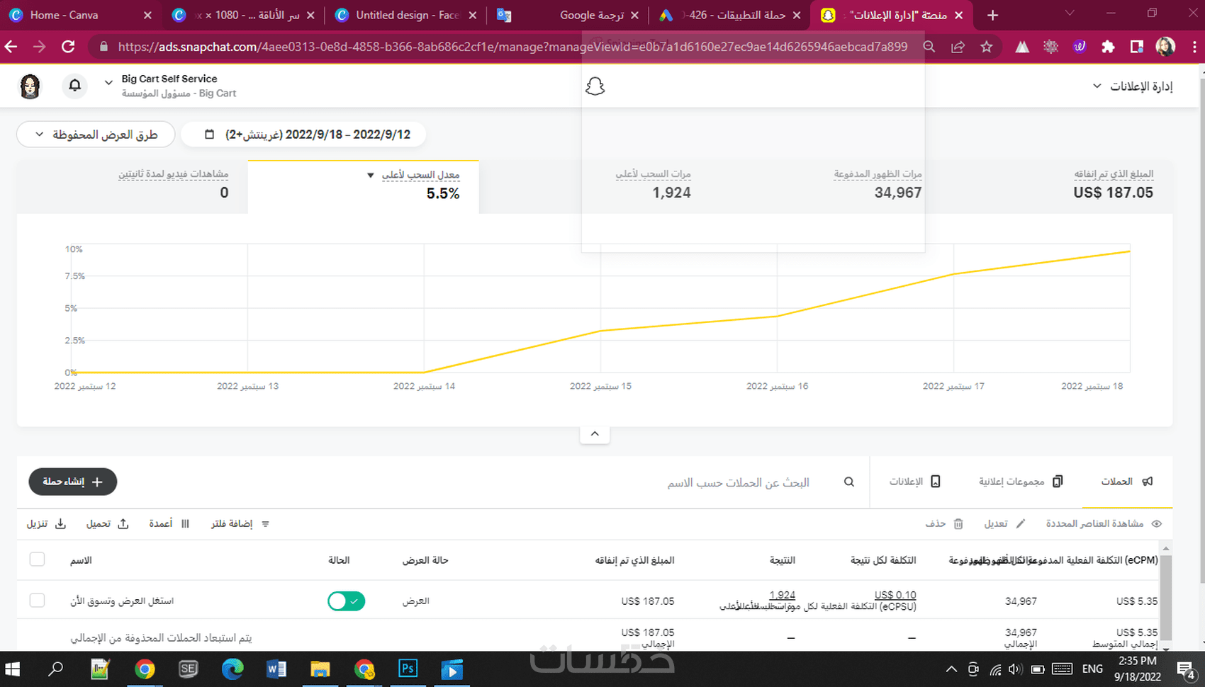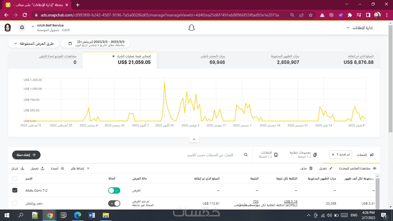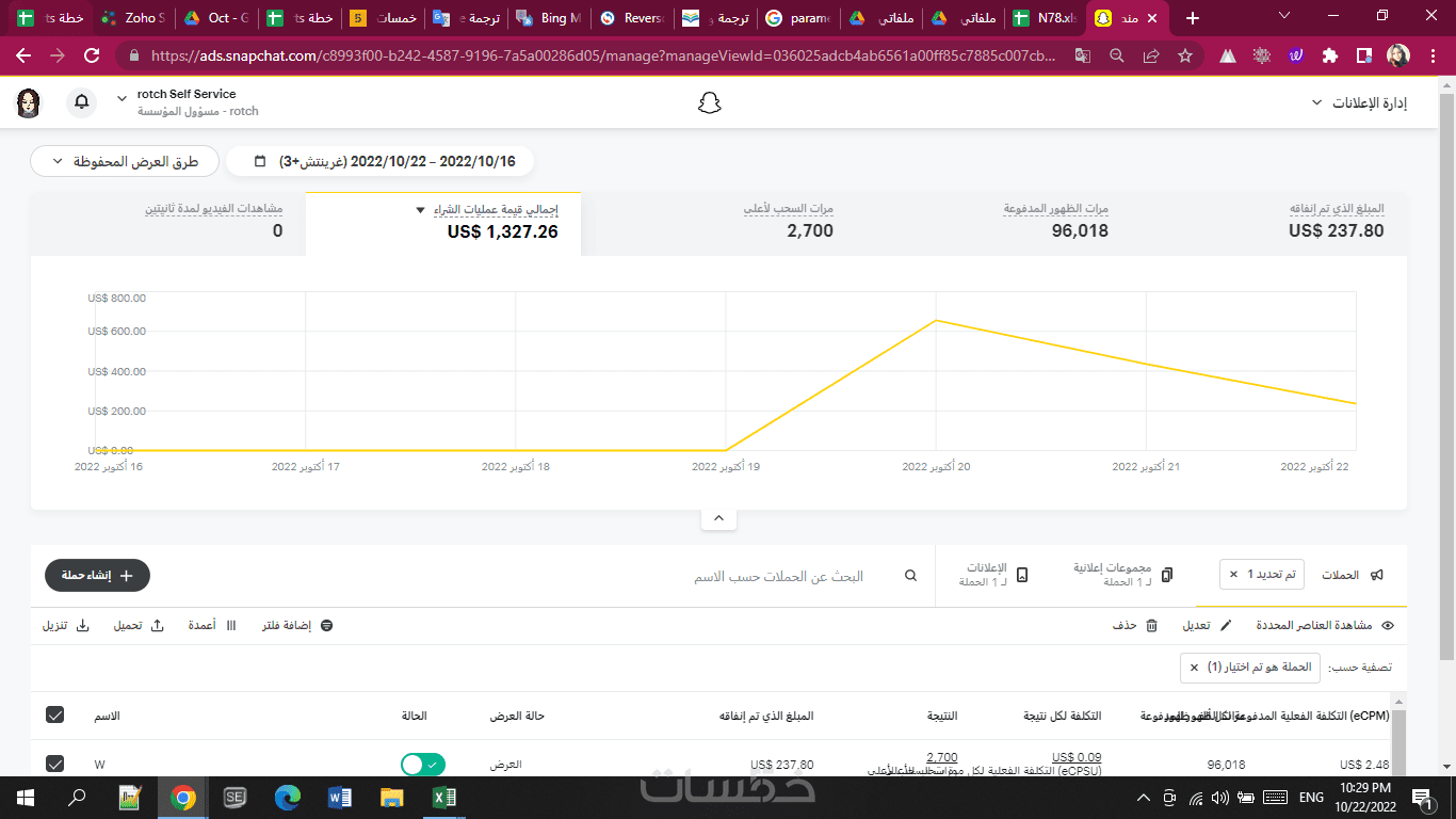 إنشاء وإعداد حملة إعلانية على منصة سناب شات لمدة يوم واحد.