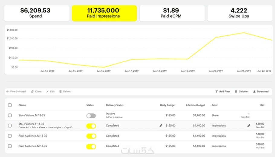 -تكلفة الإعلان الإعلانية نفسها يدفعها العميل على حسابه الخاص في سناب شات.