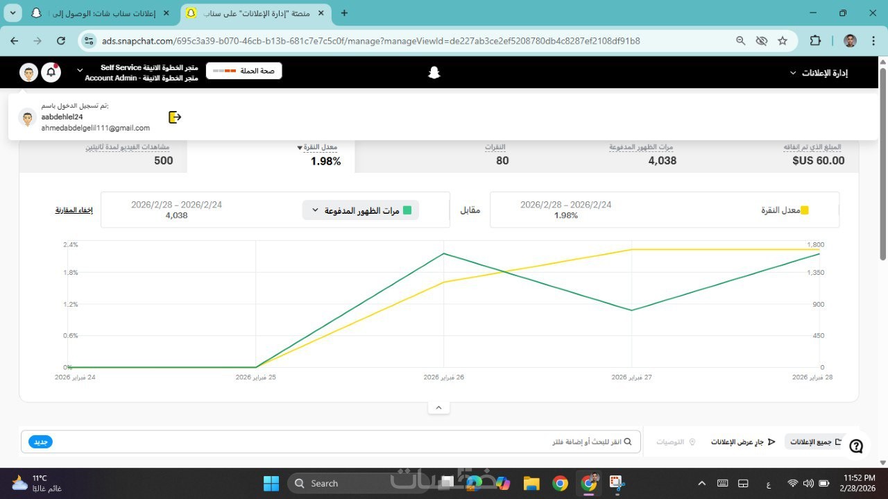 انا أحمد مسوق اكتروني واطلق حملات اعلانية بإحترافية عالية ، منصة سناب شات من المنصات الأكثر تفاعلاً سأصنع لك حملة اعلانية ناجحة عبر تطبيق السناب شات واديرها لك بافضل الاعدادات والخصائص، ويمكنك تحقيق اعلا نسبة مبيعات عليها.