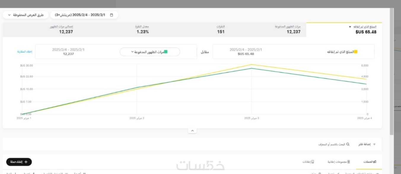 إعداد وتجهيز حملة إعلانية واحدة (Campaign) بهدف (الزيارات Traffic أو الوعي بالعلامة التجارية).