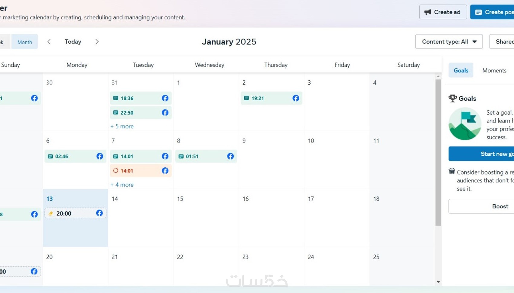 1- اقوم بنشر منشوراتك في اوقات مناسبة ( Active times) لجمهورك (بحد اقصي 15 منشور)