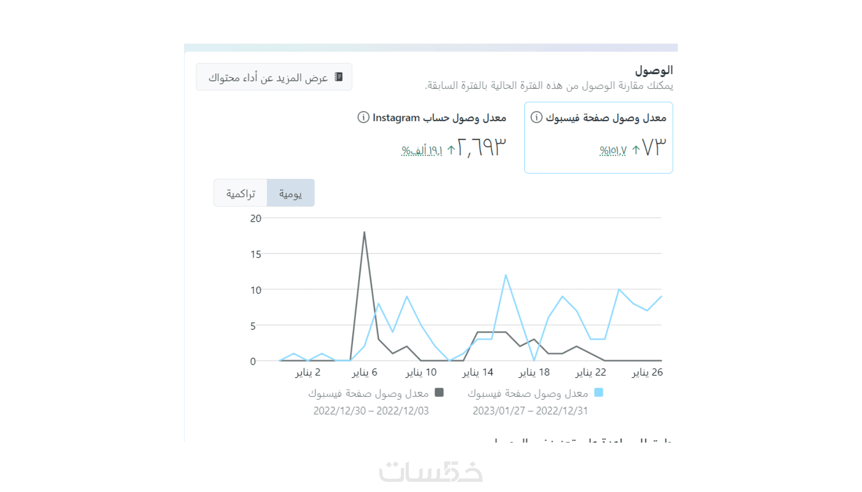 تقرير أداء بسيط: ملخص في نهاية الخدمة يوضح مدى التطور في التفاعل والوصول.