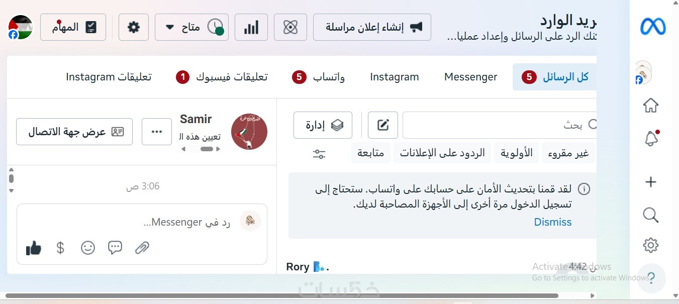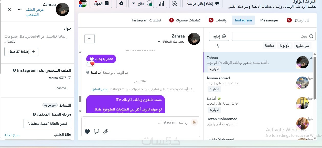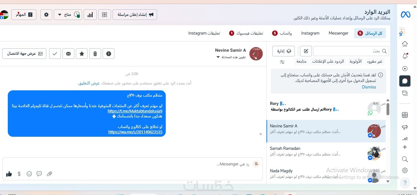 بعد الربط ستتمكن من متابعة الرسائل والرد عليها من خلال Meta Business Suite بدل التنقل بين عدة تطبيقات.