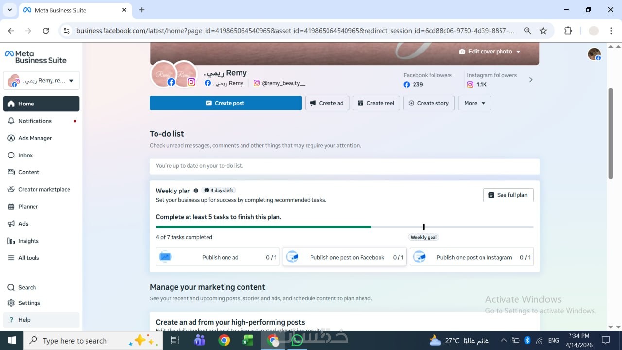 إدارة صفحتك لمدة أسبوع