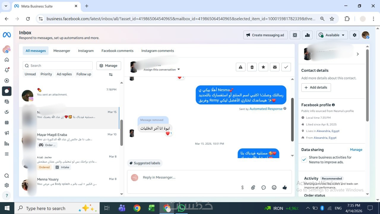 - الرد على التعليقات والرسائل بأسلوب احترافي وسريع.