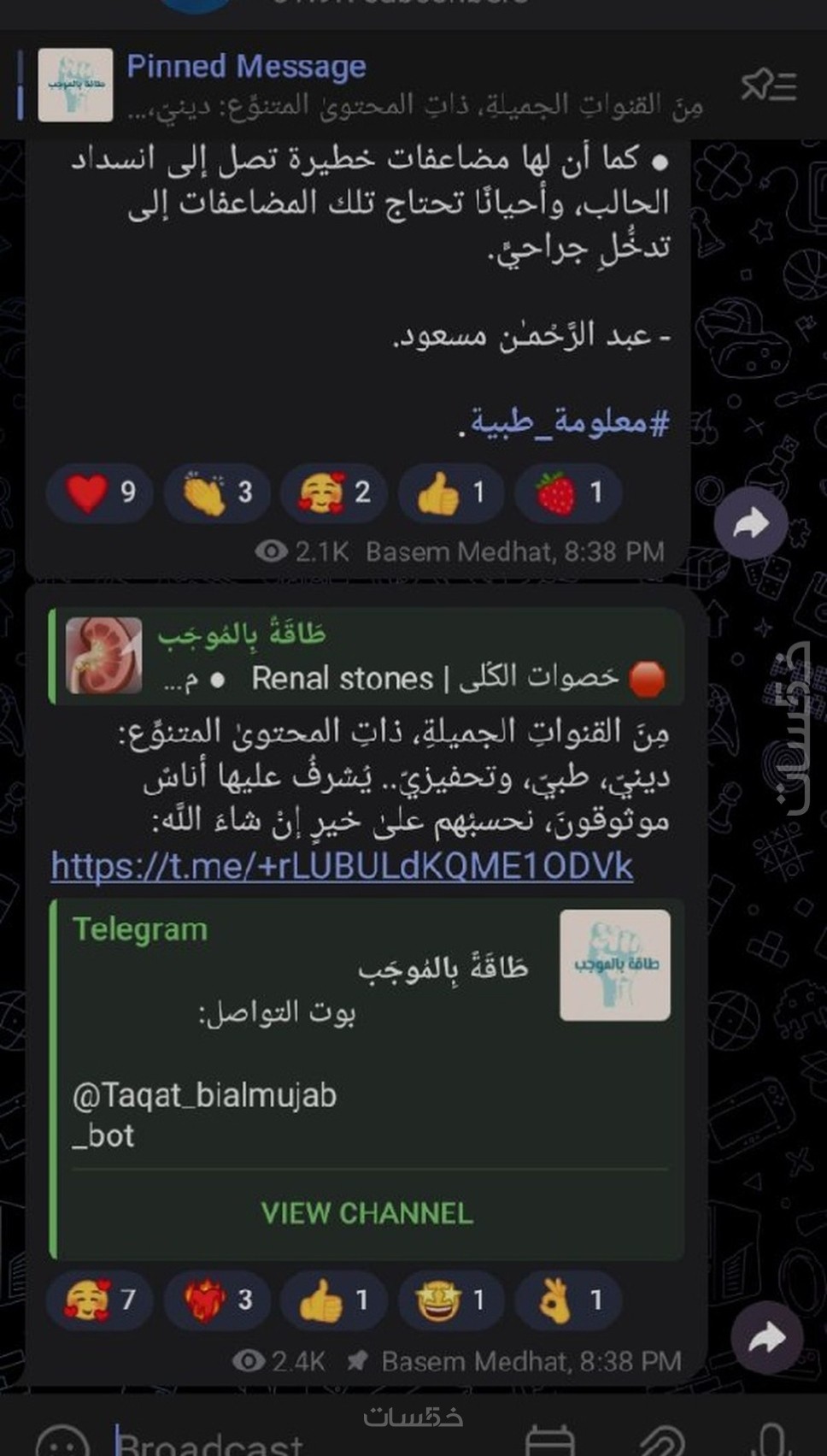 تمكِّنك القنوات من إرسال الرسائل لعملائك ونشر إعلاناتك ومنتجاتك إذ يمكن للمشرفين فقط النشر على القنوات، ولا تظهر بيانات المشتركين في القناة لباقي الأعضاء.