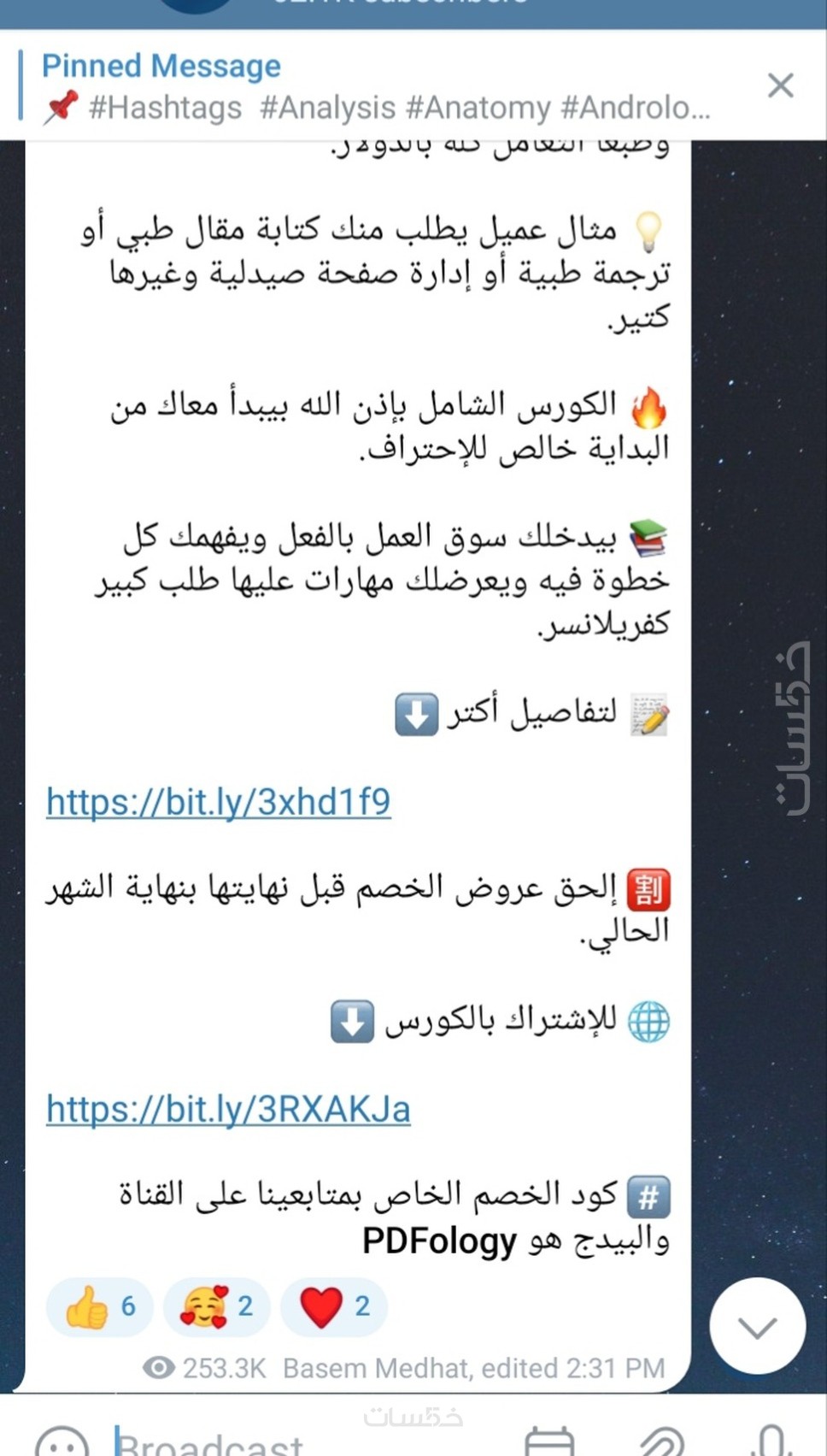 يدفع التسويق عبر التليجرام بمنتجاتك إلى قاعدة أكبر من العملاء المحتملين، ويمنحك فرصة لضم جميع عملائك الفعليين لمجموعة واحدة والتواصل معهم جميعًا في نفس الوقت وإشعارهم بكل ما هو جديد والتفاعل معهم. ولتحصل على أفضل النتائج موفرًا الوقت والمال استعن بخدمات التسويق عبر التليجرام التي يقدمها المحترفون عبر منصة خمسات بأنسب الأسعار.
