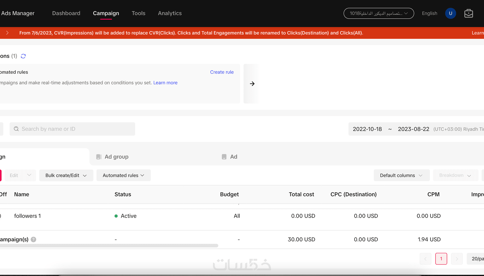 يرجى مراعاة أن السعر المذكور يشمل تنفيذ الإعلانات على منصة TikTok ولا يشمل قيمة الإعلان ذاته.