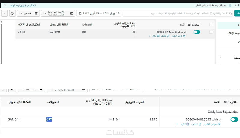 ادير الحملة من حساب العميل