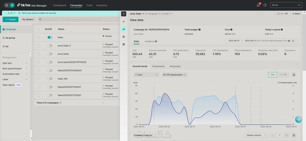 إعداد حملة TikTok Ads احترافية حسب هدفك (مبيعات – زيارات – تحويلات).