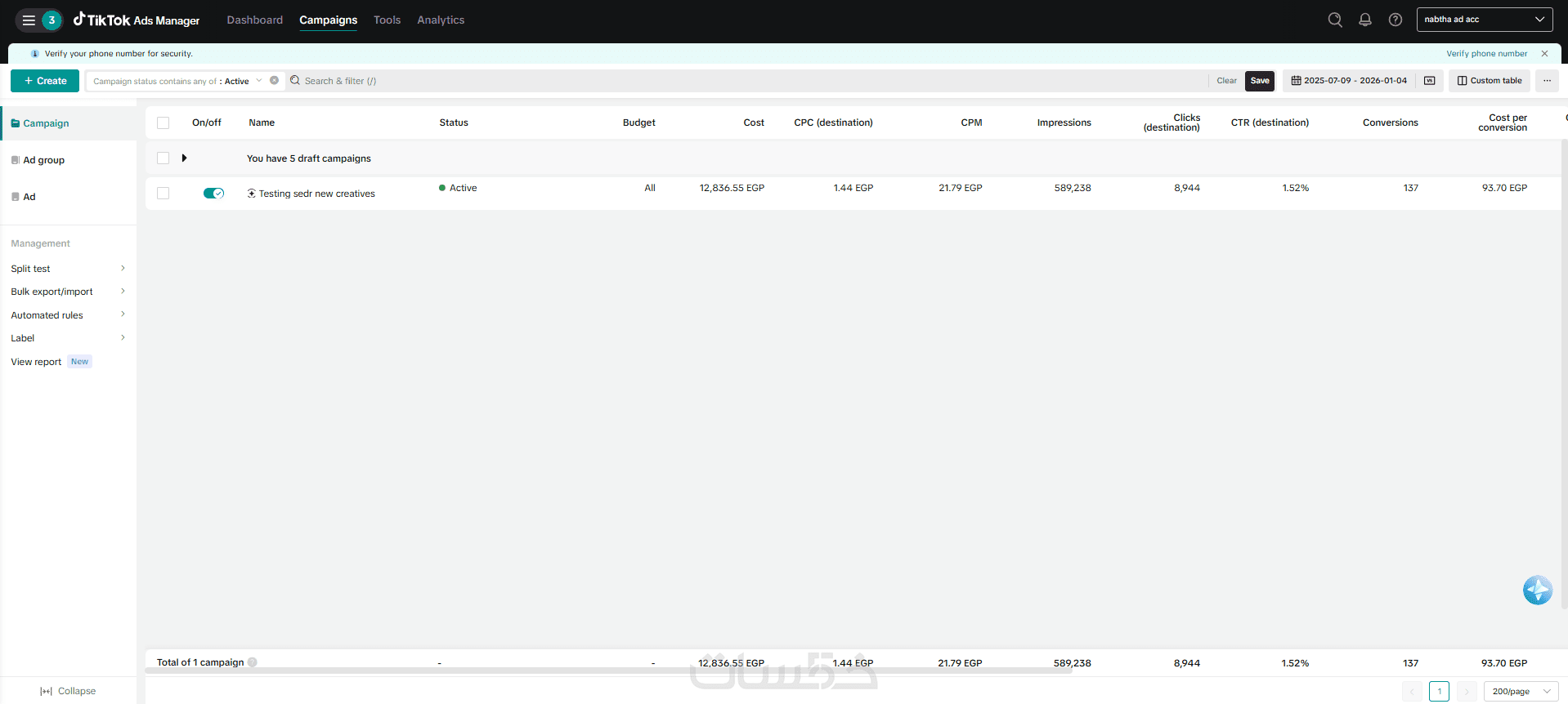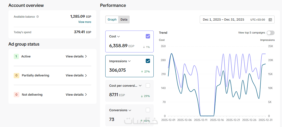 مدة العمل والمتابعة: إدارة ومراقبة أداء الحملة لمدة اسبوع 7 ايام